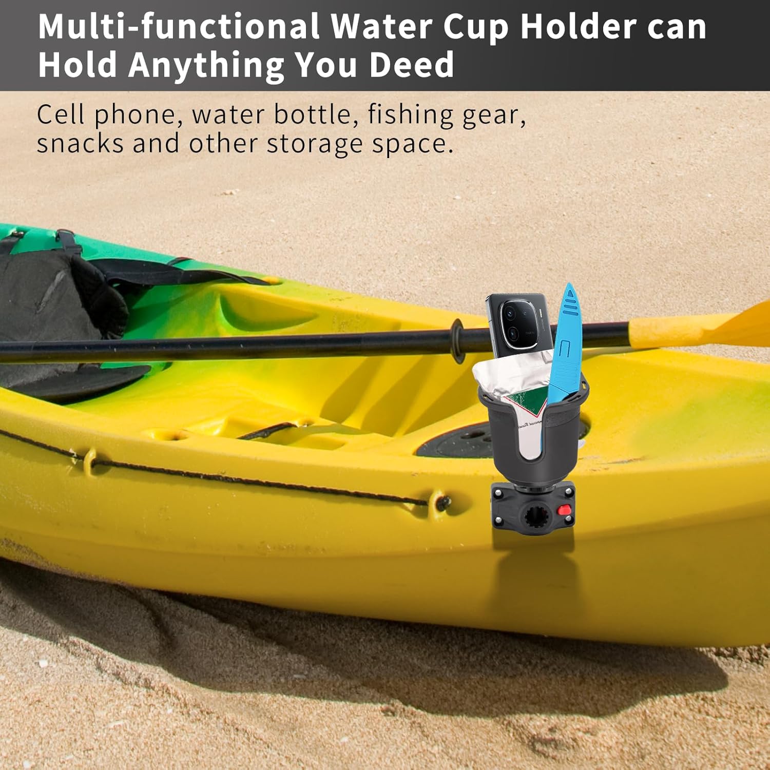 【Versatile Design】Kayak cup holder serves multiple functions, accommodating drinks, mobile phones, glasses, coins, keys, snacks, and more. Additionally, the holes on either side of the cup mouth provide convenient hanging for fishing bait.