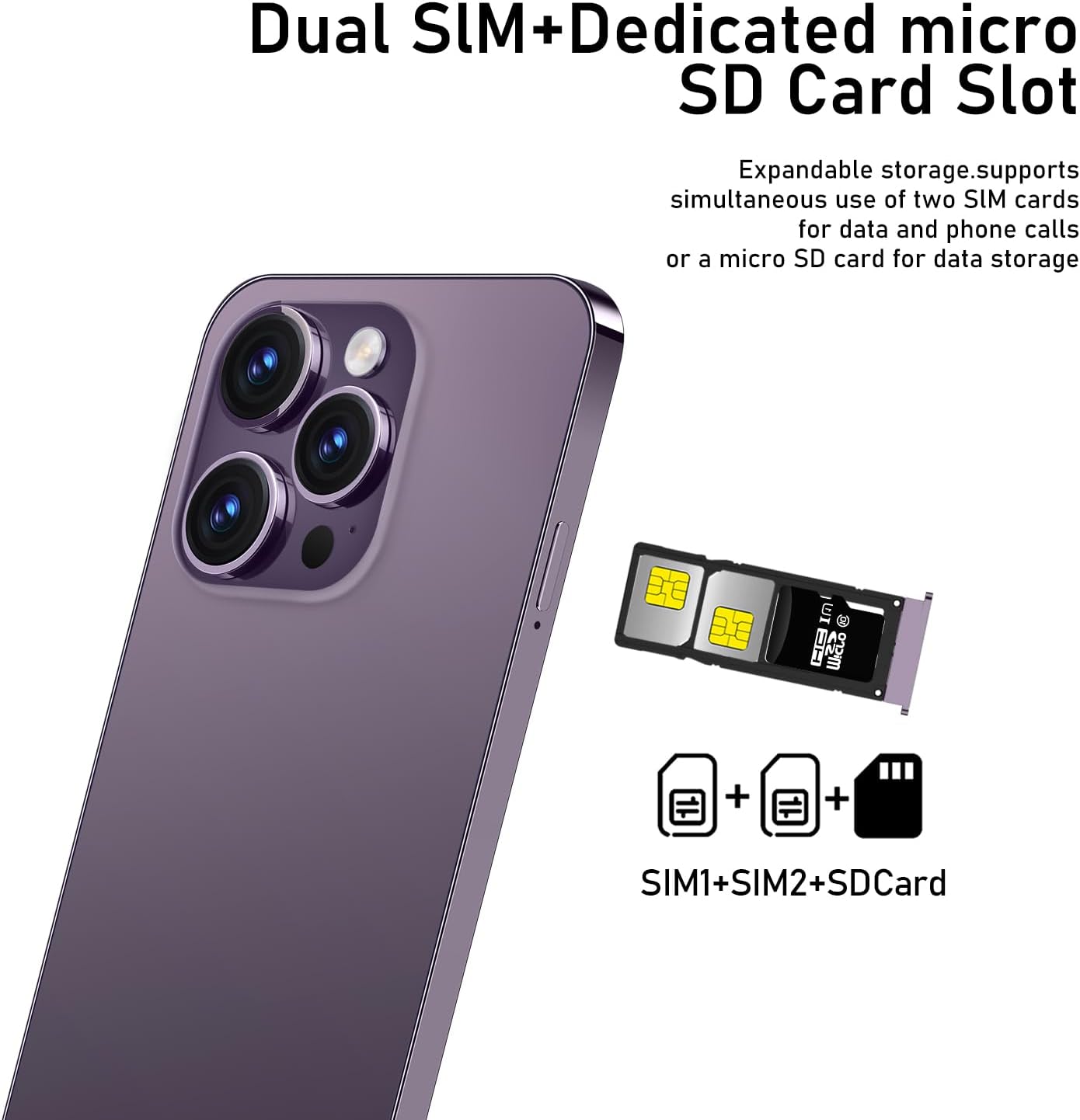 Unlocked Android Phone A14 ProMax Smartphone,5000mAh 6.8″ HD Screen Unlocked Cell Phones, 6GB+256GB Android 13.0 Dual SIM/4G/Fingerprint Lock/GPS/Face ID (Purple)