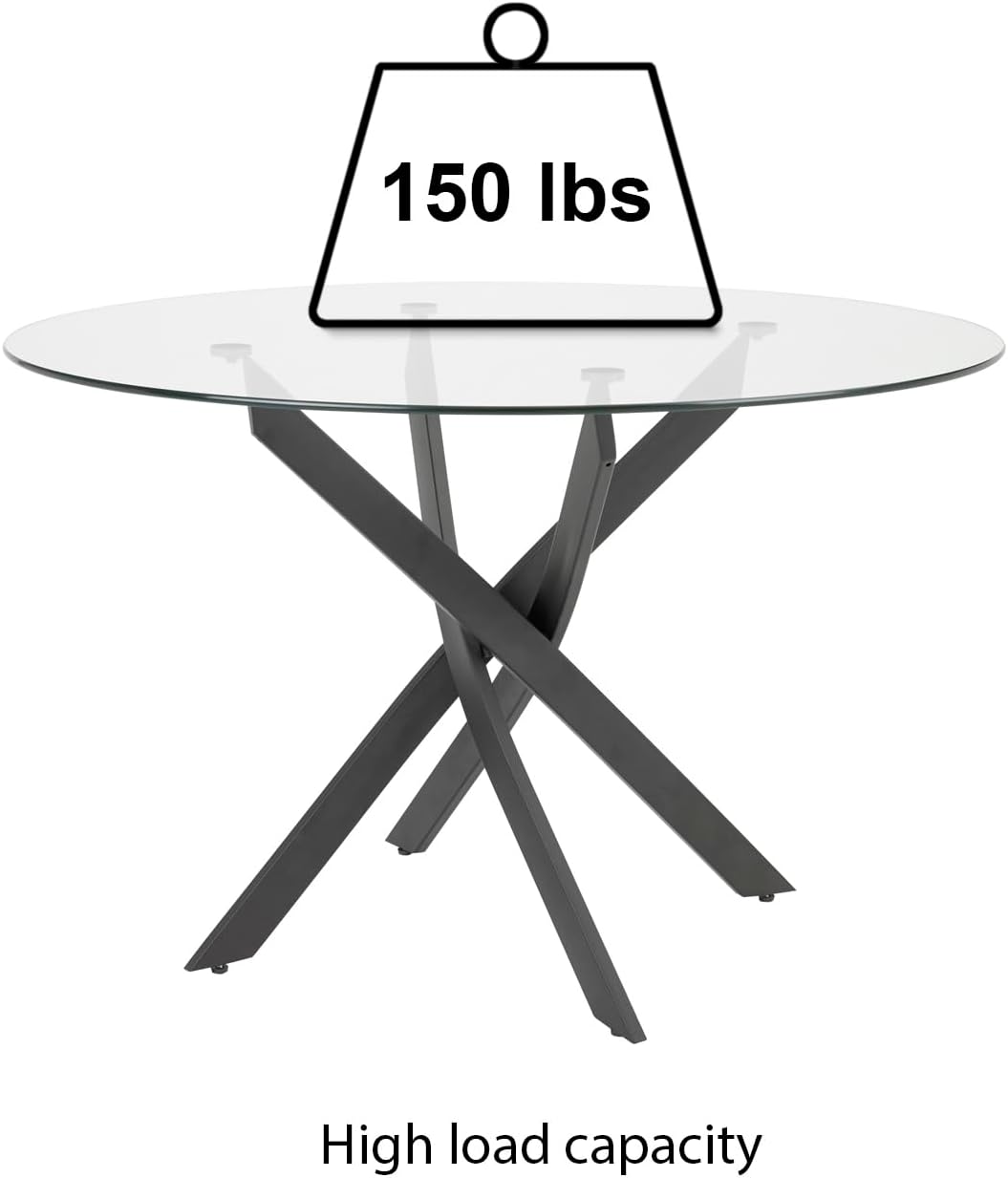 COMFORTABLY SEATS 4 – The glass dining table measures 47″L x 47″W x 30″H and weighs 78 Lbs; A round table that easily seats 4 people in an intimate yet sophisticated dining setting