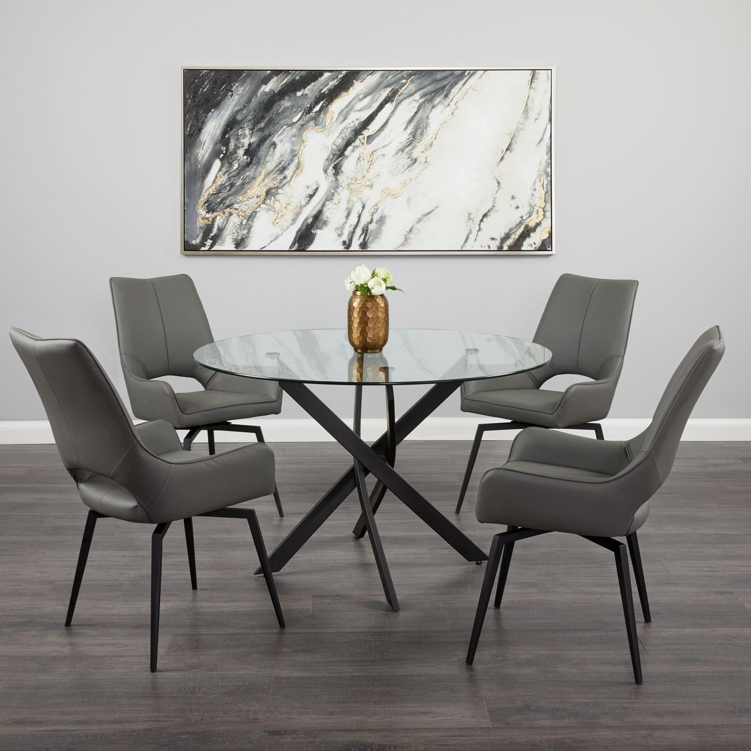 Uptown Club Modern Round Dining Table with Tempered Glass Top, Seats 4 in Style & Comfort, Elegant Kitchen Furniture for Contemporary Home, 47-Inch, Black