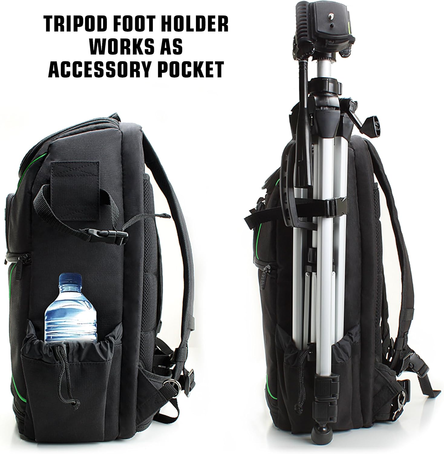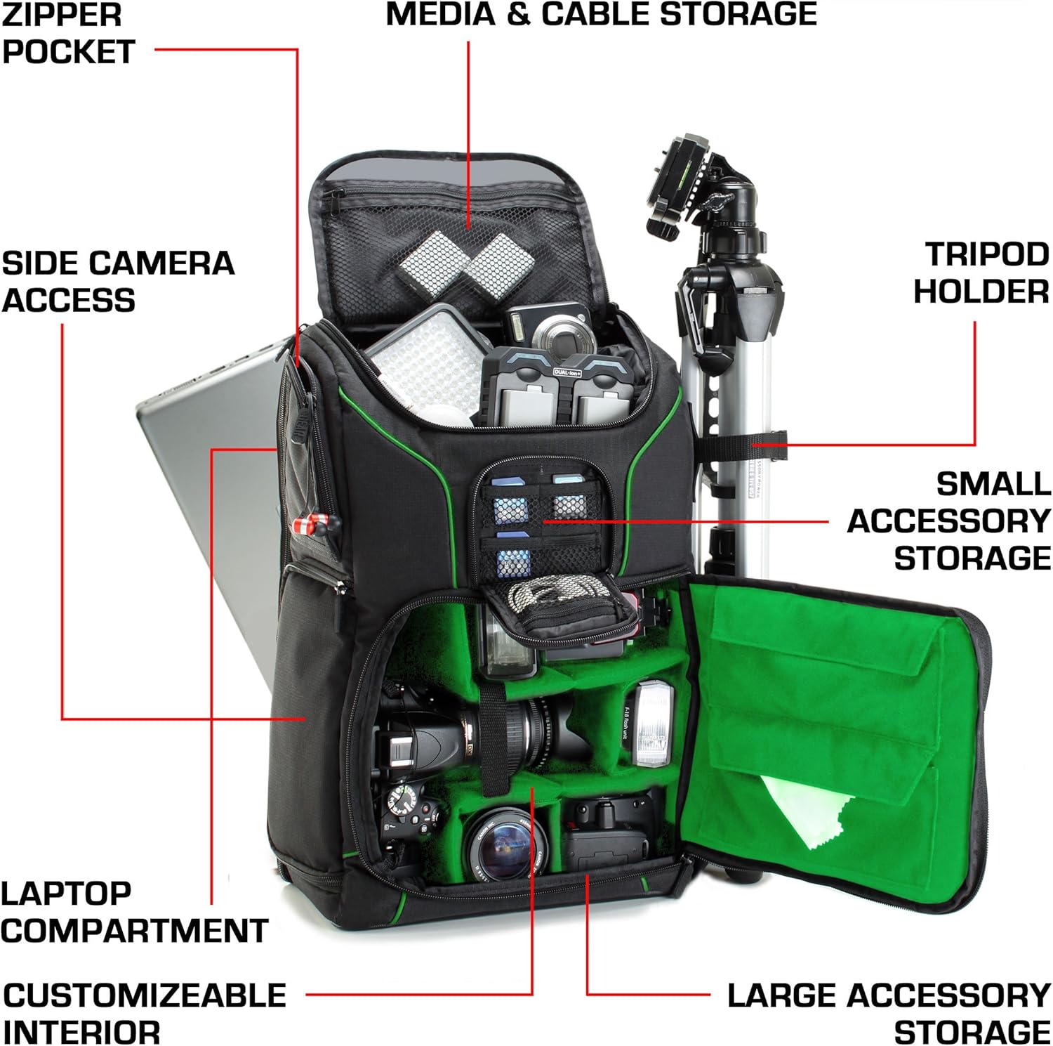 USA Gear DSLR Camera Backpack Case – 15.6 inch Laptop Compartment, Padded Custom Dividers, Tripod Holder, Rain Cover, Long-Lasting Durability and Storage Pockets – Compatible with Many DSLRs (Green)