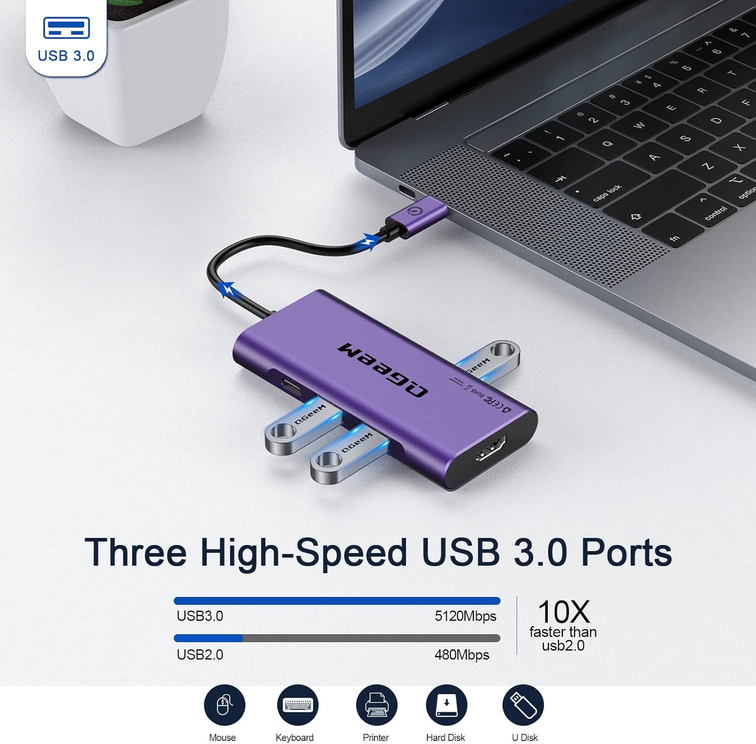 USB C Hub, QGeeM USB C to HDMI Adapter 4k, 7 in 1 USB C Dongle with 100W Power Delivery,3 USB 3.0 Ports, SD/TF Card Reader, Compatible for MacBook Ipad HP Dell XPS and More Type C Device
