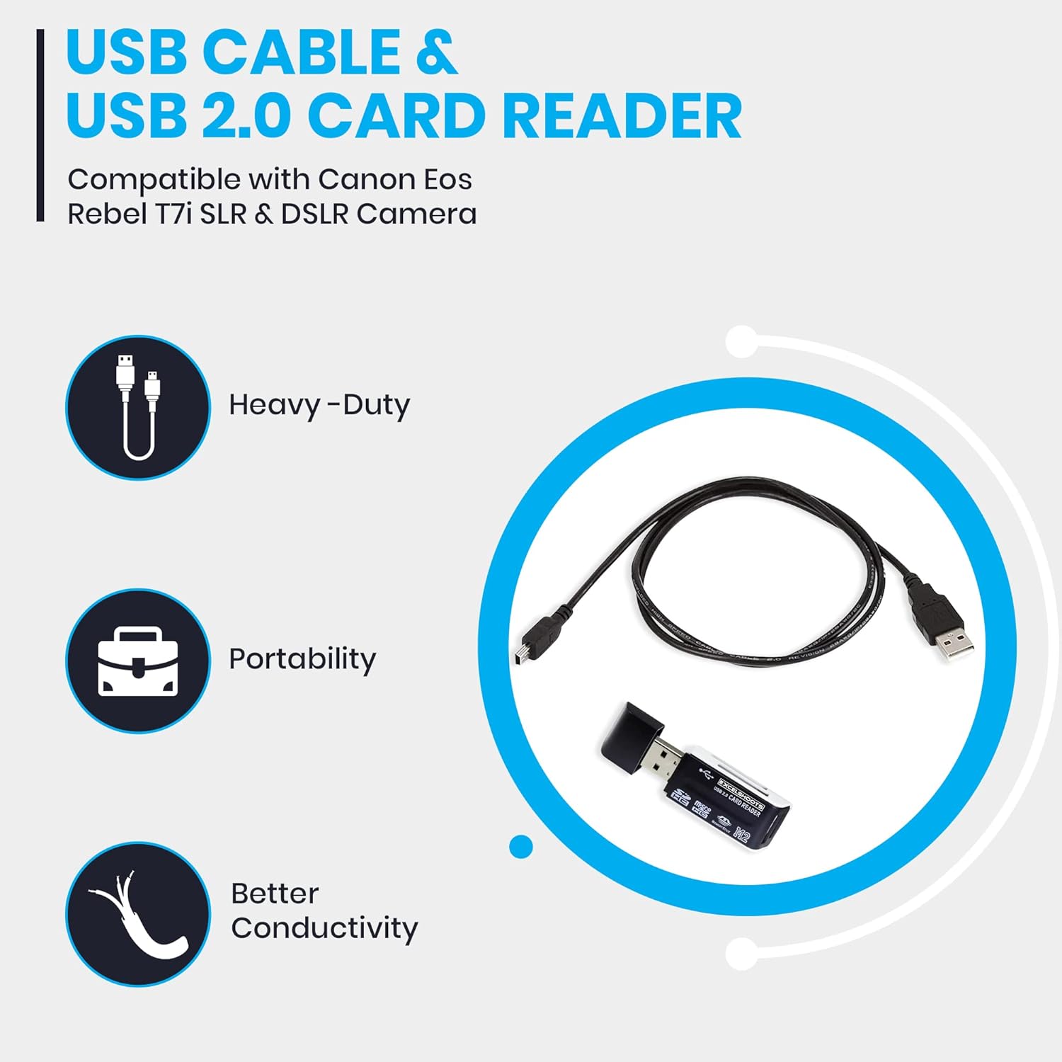 USB Cable Compatible with Canon EOS Rebel T7i DSLR Camera| Mini USB Data Transfer Cable for Canon PowerShot/Rebel/EOS/DSLR Cameras & Camcorders| Camera Cable & Memory Card Reader| 3 FT