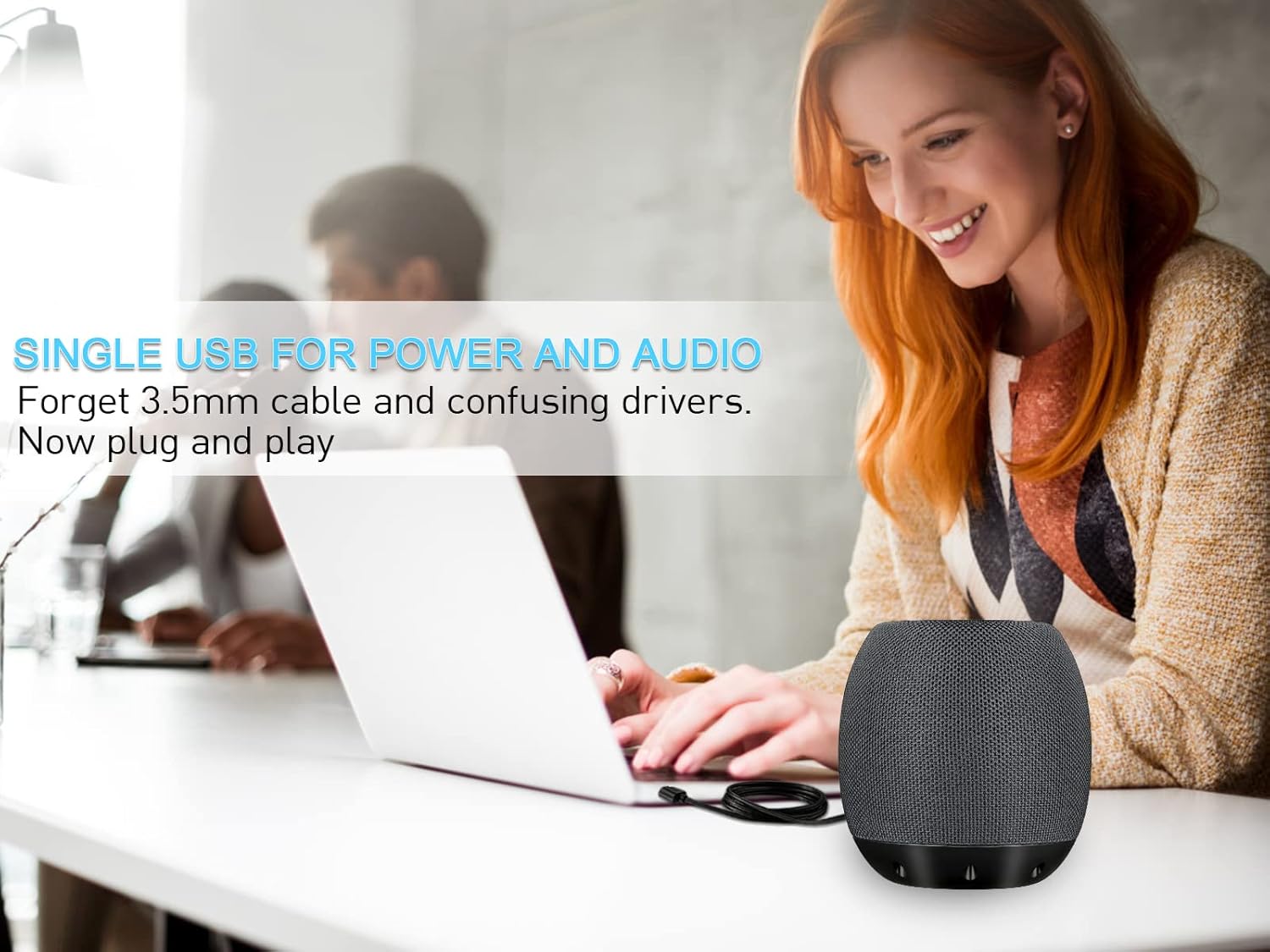 【Single USB Cord】: Our desktop speakers are built with the latest computer audio decoding chip which makes your computer automatically recognize and select our USB speaker as the playback device.Forget the 3.5mm cables and various audio drivers please because the single USB cable supports power and audio