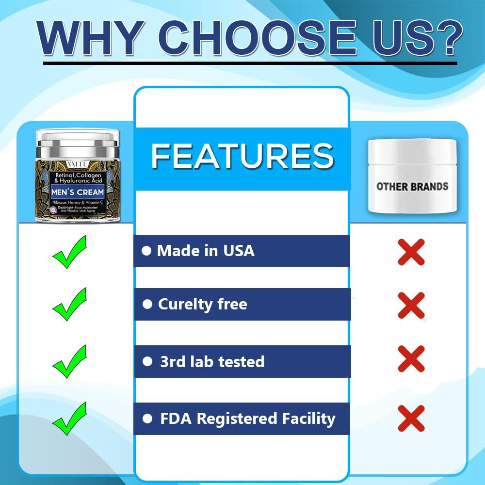 VAITE Mens Face Skin Moisturizer with Collagen, Retinol Ant-Aging, Anti-Wrinkle Under the Eyes Men’s cream care for Face with Hibiscus & Honey, Hyaluronic acid, Vitamin C Made in USA