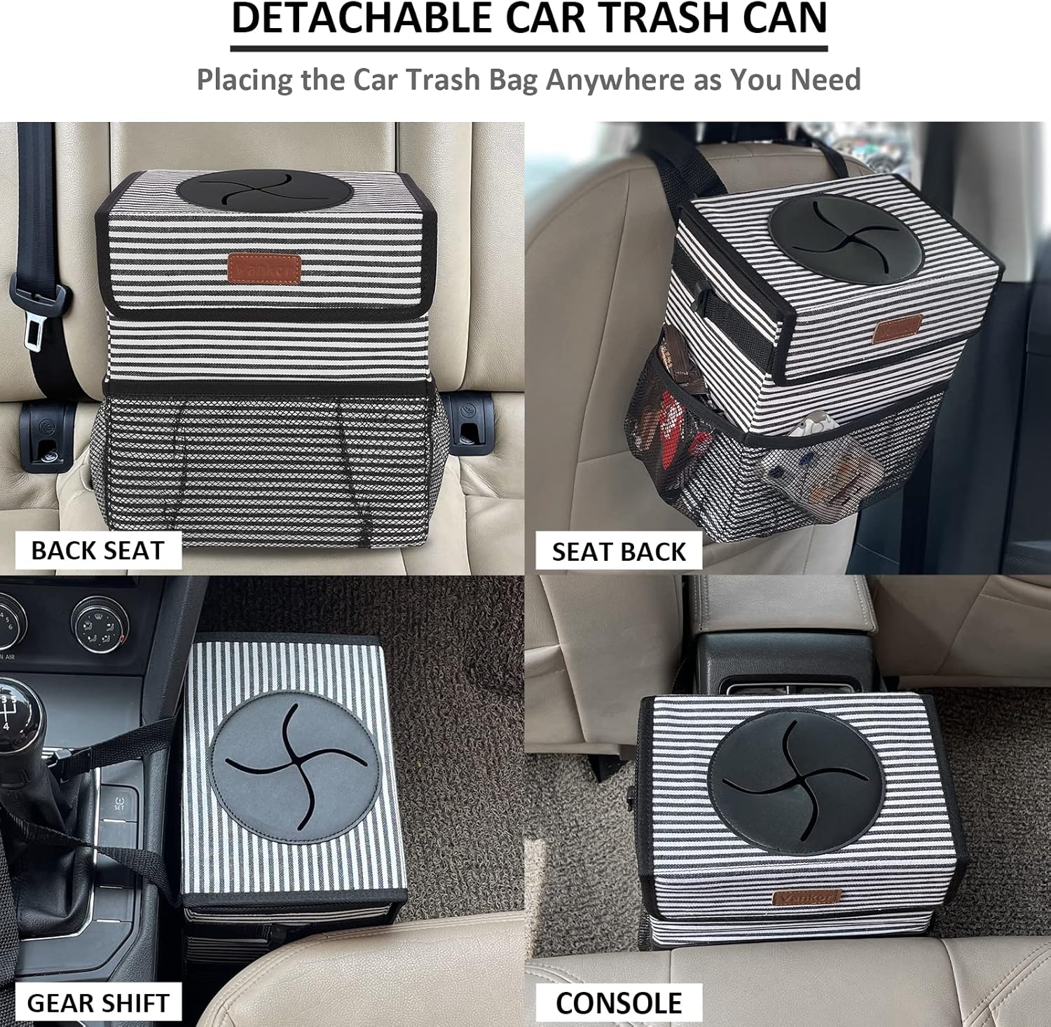 【Keep Your Car Clean】- Are you always bothered by the messy of the car interior? Vankor’s car trash can with lid will help you to solve this annoyance. This cute car trash can will be helpful for keeping your car clutter-free, ensuring you are in a good mood while driving. Large car trash can with an adjustable strap is hung on the gear shift, glove box, headrest. You can also display the hanging car trash bag on the floor, hanging on the back seat, co-driver seat, or any place in your car.