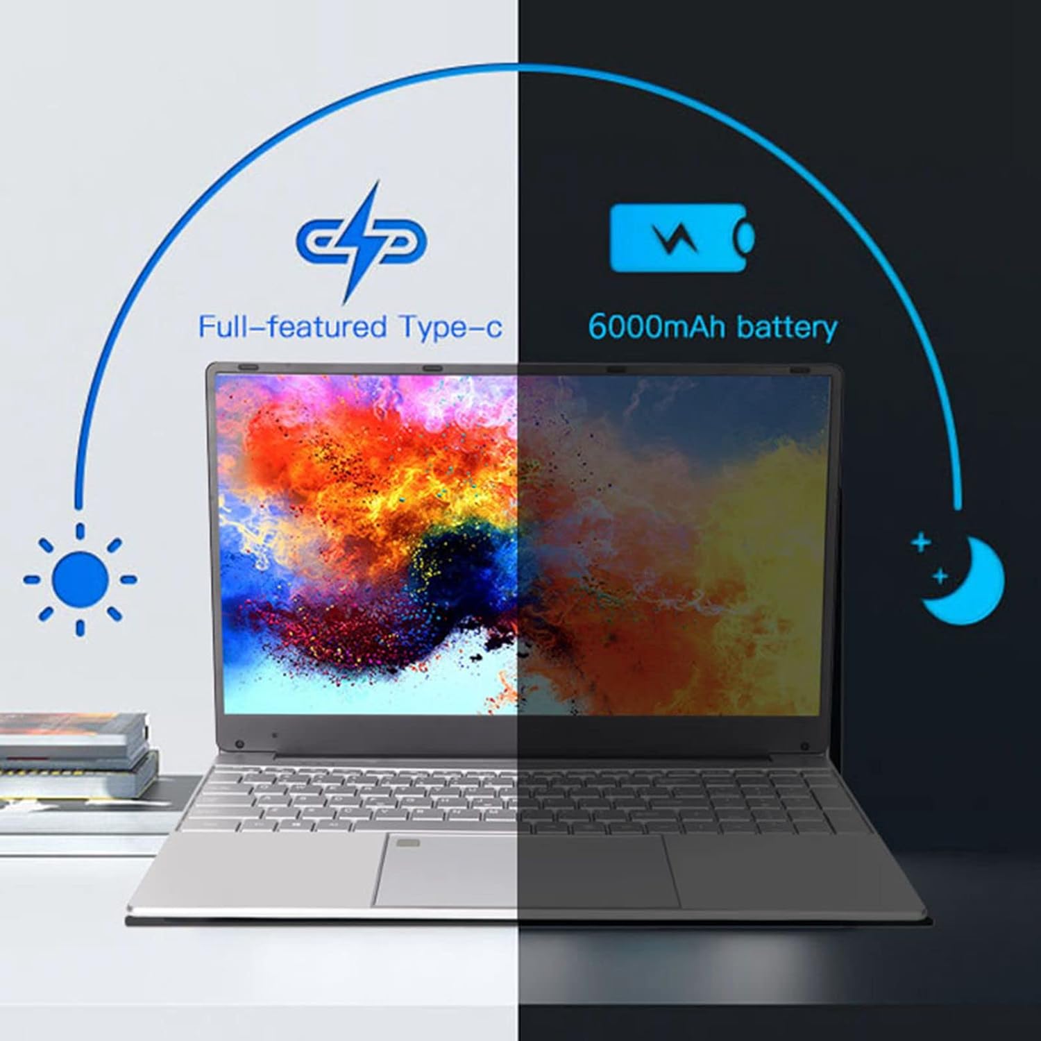 VBESTLIFE 15.6in Silver Slim Laptop, FHD IPS Screen, for Intel J4125 Quad Core and Four Threads, 8GB RAM 128GB Storage, Bluetooth, Touch Pad, for Windows 11 Home (US)