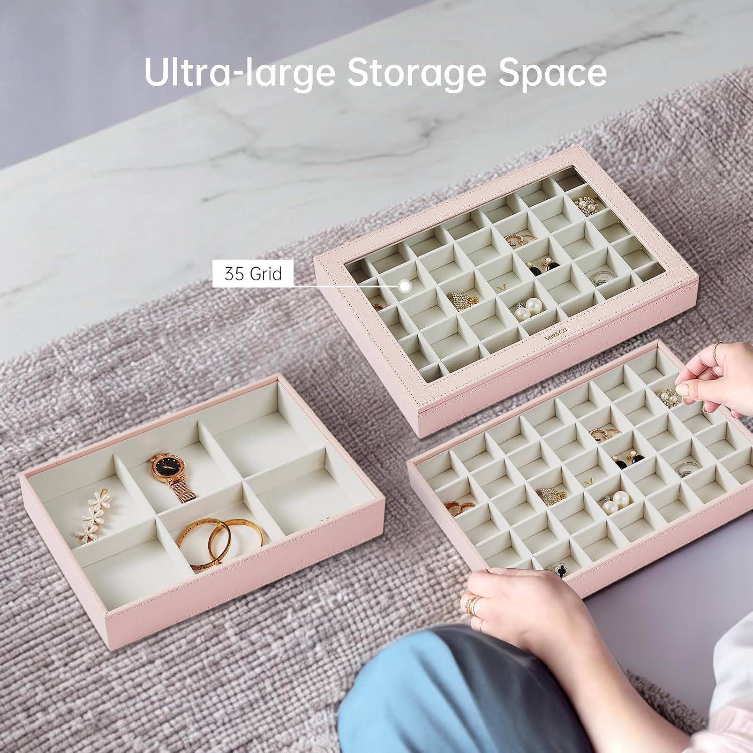 Customize Your Own Set: All our Vee trays can be stacked on top of each other and compatible with lids, and will not slide around. Our Vee jewelry trays can be used alone or combined. You can also mix and match different kinds of storage, and create your own jewelry organizer with a variety of colors and styles.
