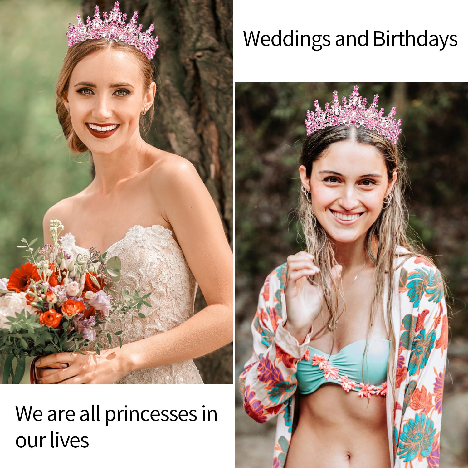 ❤️Material: durable cemented carbide and rhinestones. The alloy has a diamond appearance and a hard texture, which is both practical and beautiful. The weight of the product is less than 200 grams, and there is no sense of weight on the head after wearing the crown.