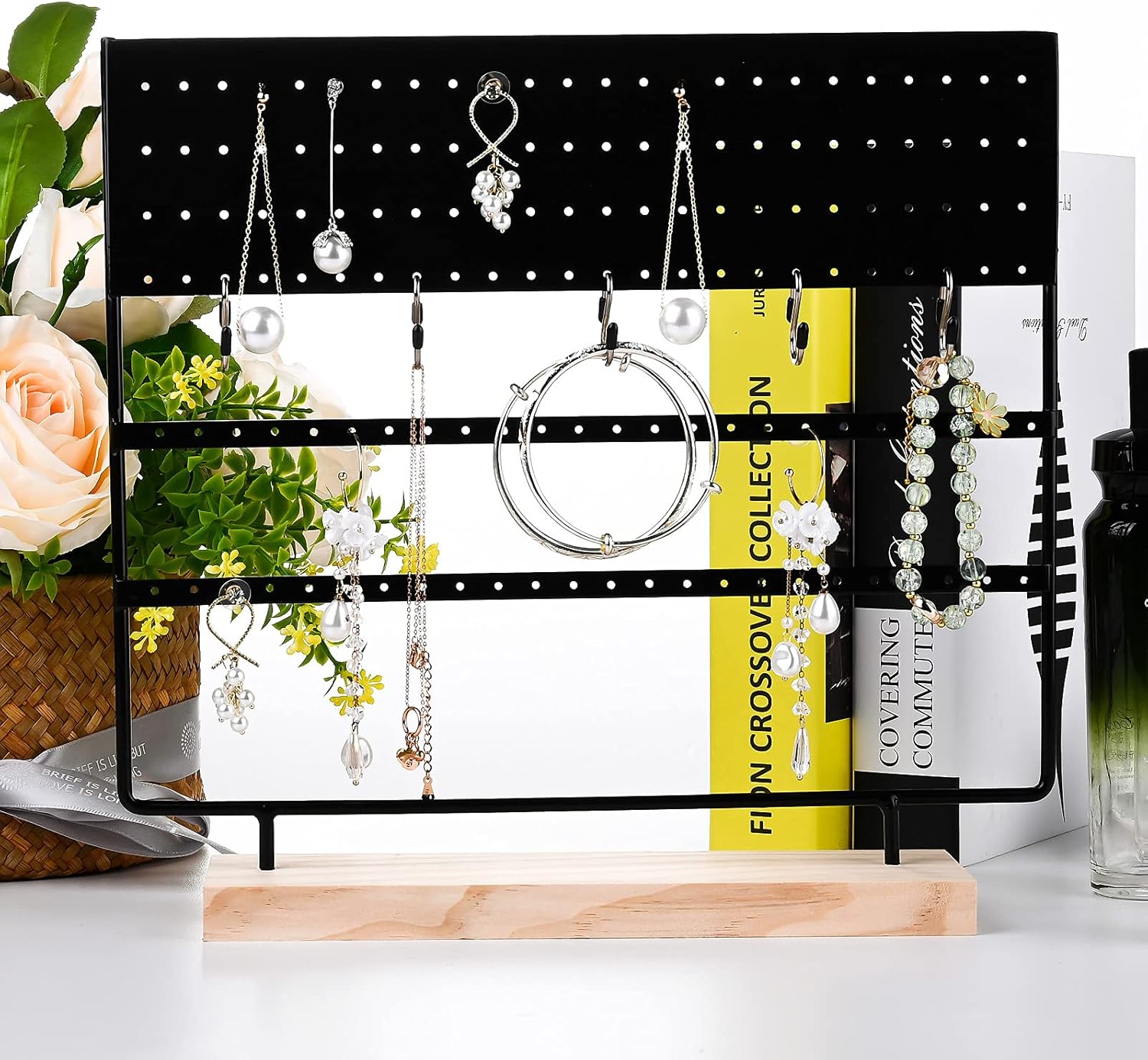 69 Holes FOR EARRINGS- This jewelry rack can hold up to 34 pairs of earrings . You’ll be able to hang up your favourite studs, dangle earrings, and hoops with ease. No longer do you need to worry about losing the backs of your earrings. This holder can accommodate push backs, screw backs, butterfly backs, and locking backs.