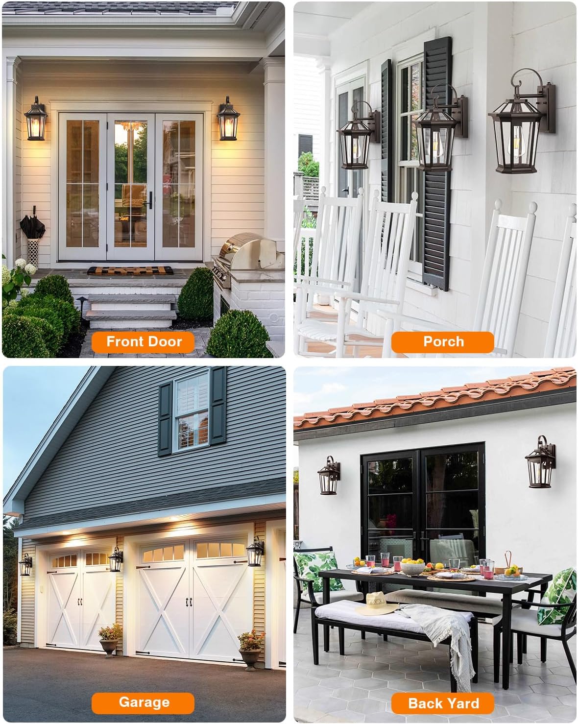 🌟【Anti-Rust & Weather Resistant】Our porch lights outdoor are crafted with 100% heavy-duty die-cast aluminum and durable tempered glass, providing a high waterproof and excellent protection anti-rust and anti-corrosion. Rain, snow, extreme heat, or freezing temperatures, these outdoor lighting fixtures will remain as bright and fresh as new after years of use, eliminating any concerns about aging or deterioration.