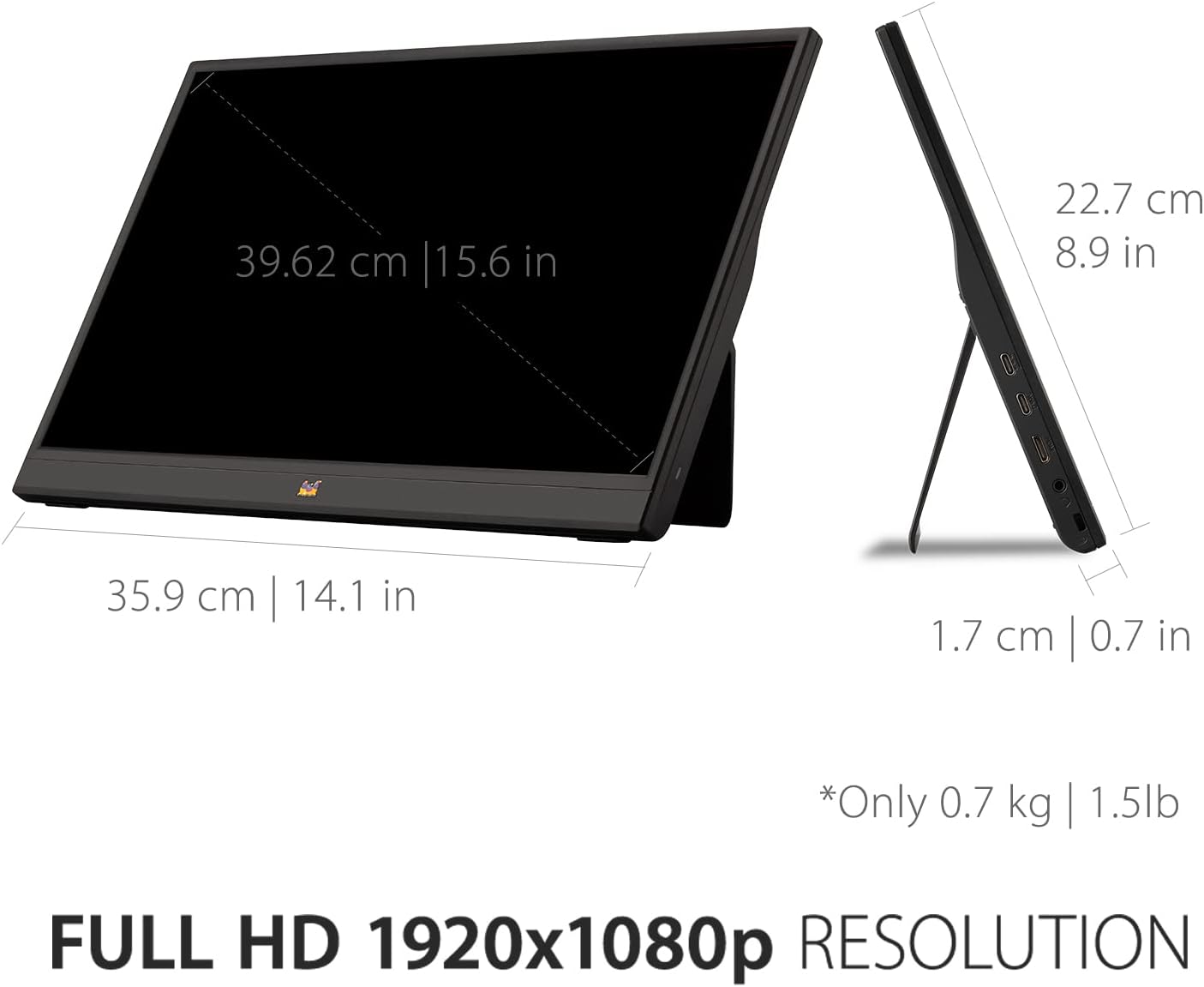 ViewSonic VA1655 15.6 Inch 1080p Portable IPS Monitor with a Built-in Stand, Mobile Ergonomics, USB C, Mini HDMI and Protective Case for Home and Office,Black