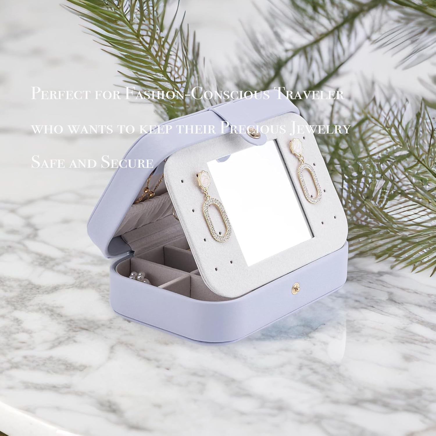 Vlando Small Travel Jewelry Box Organizer – Mirrored Jewelries Necklaces Rings Earrings Necklace Storage Case for Girls Women Vacation, Purple