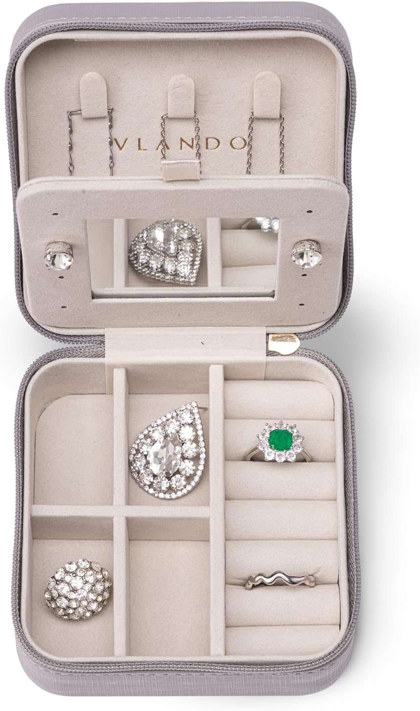Be the first to review “Vlando Small Travel Jewelry Box Organizer – Mirrored Jewelries Necklaces Rings Earrings Necklace Storage Case, Gray”
