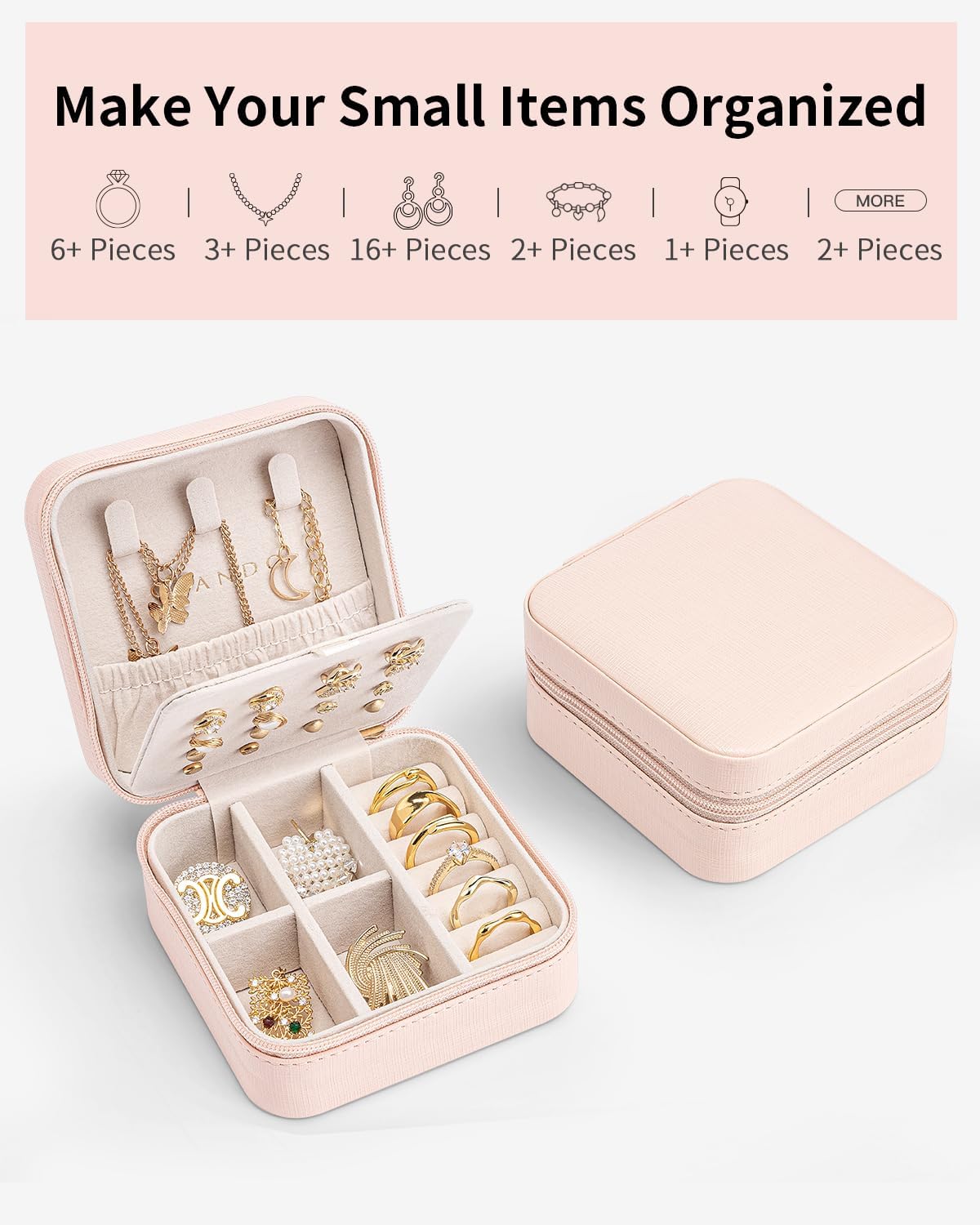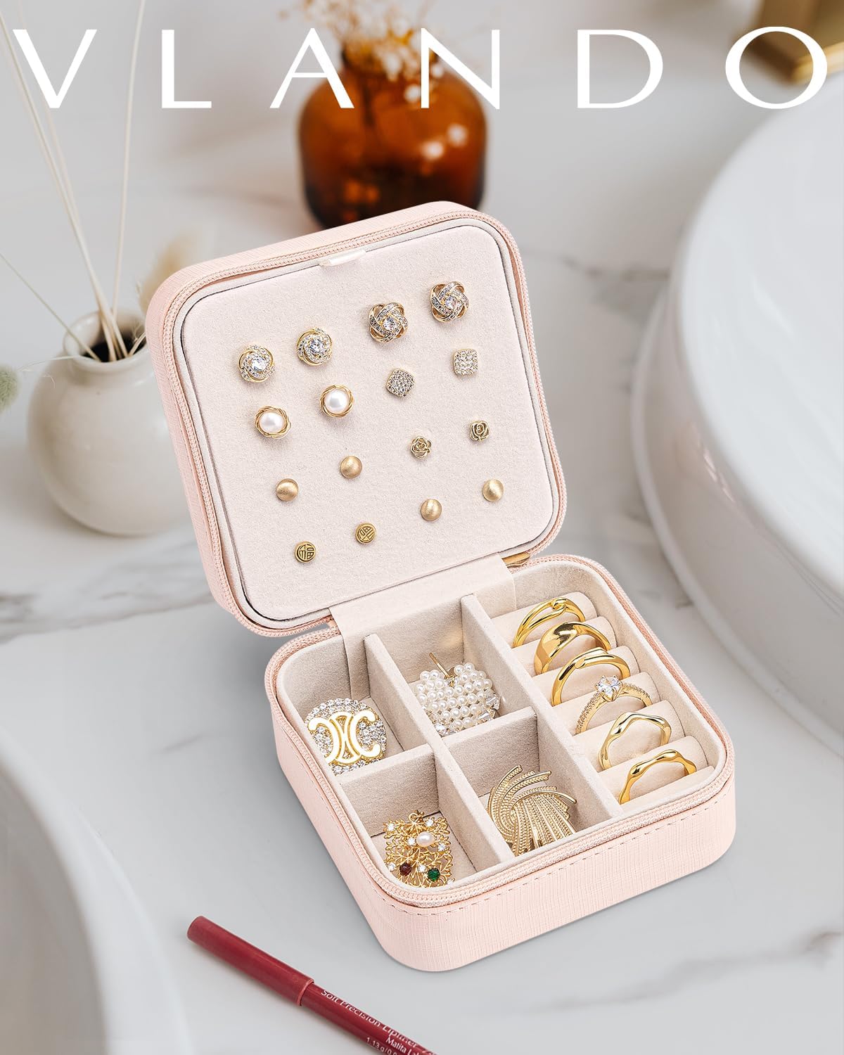 Vlando Travel Jewelry Case, Small Travel Jewelry Organizer Box for Girls Women – Pink