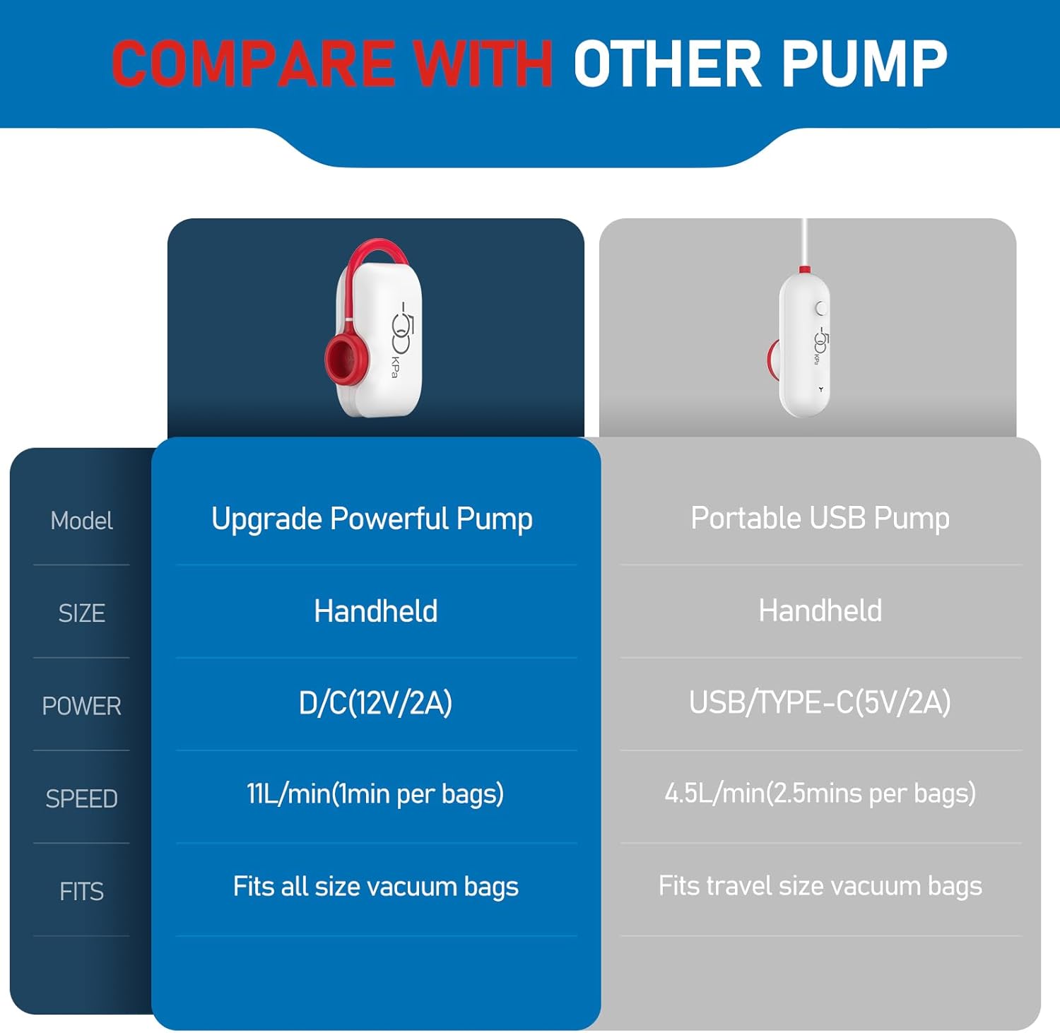 -50Kpa Extreme Compression: Vacuum quickly within 30s, effectively discharging the air with a vacuum level of up to -50KPa and an exhaust volume exceeding 11L/mins.
