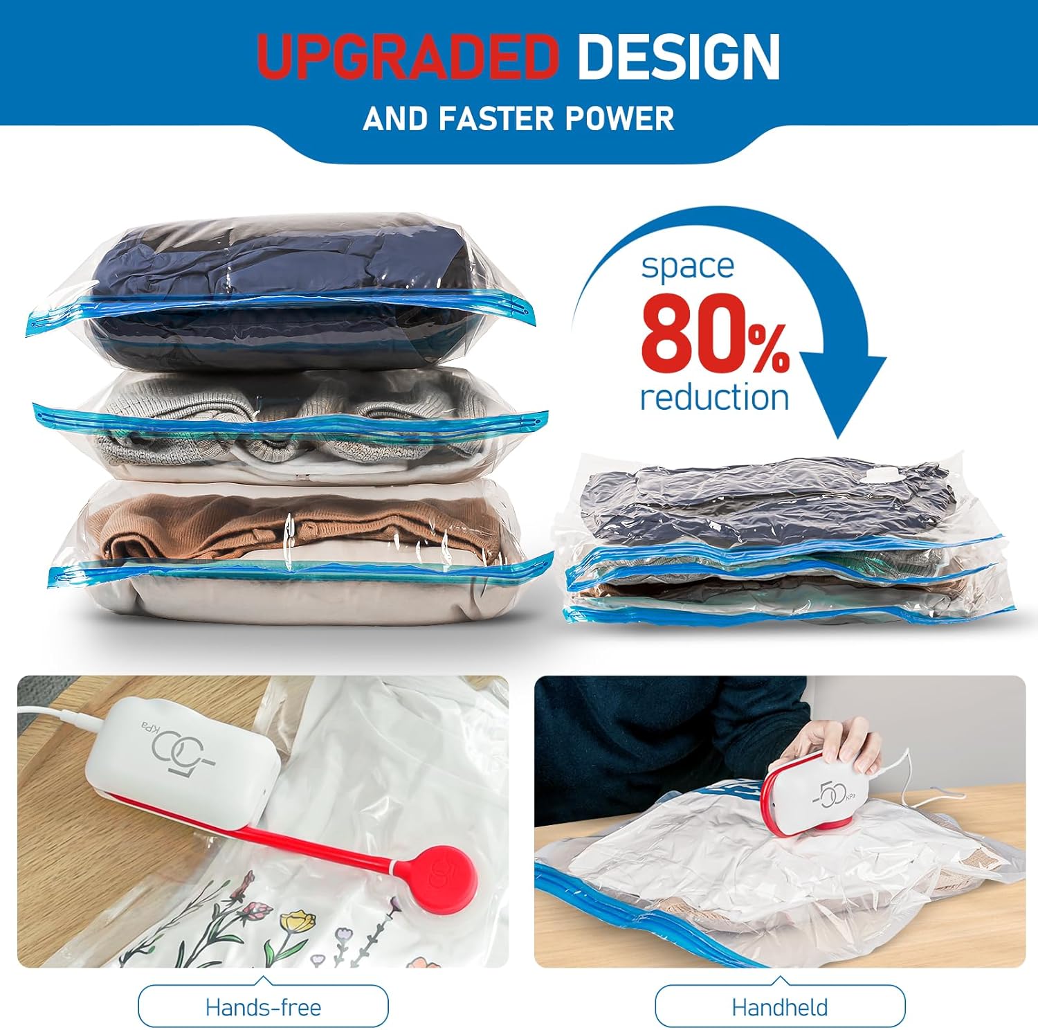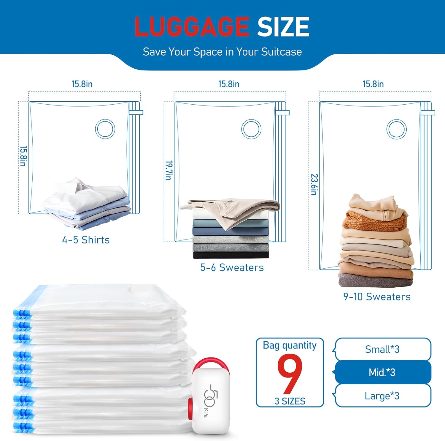 VMstr 9 Pack Vacuum Storage Bags for Travel, Carry-on Size for Luggage Compression Packing, Space Saver Bags for Clothes and Clothing, High Pressure Electirc Pump