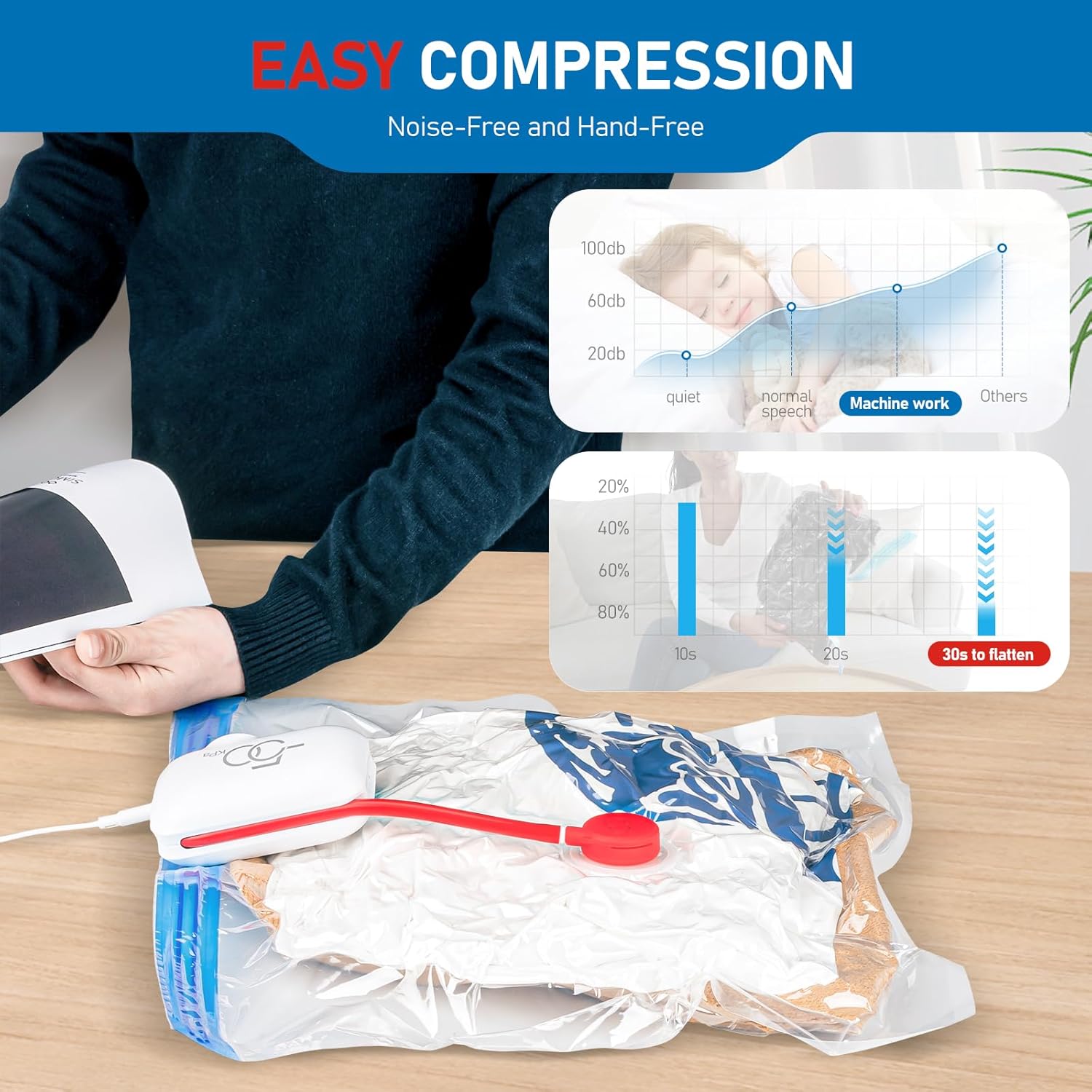Running Voice <30db: Ensures a quiet clothes packing experience without compromising performance. Reject the pumping noise of your home hoover.