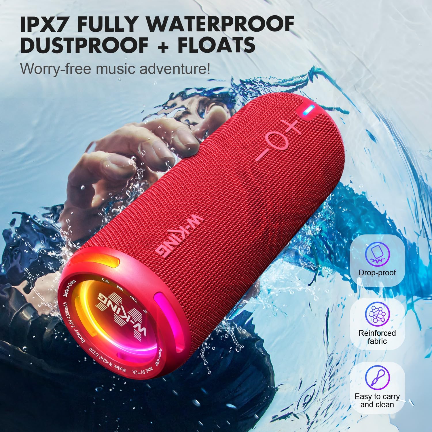 W-KING Portable Outdoor Bluetooth Speaker, IPX7 Waterproof Loud Speaker Bluetooth Wireless, Dual Voice Coil, Customized EQ APP/Deep Bass, 360° Sound with Lights/V5.3/TF/AUX, Party Shower Speaker