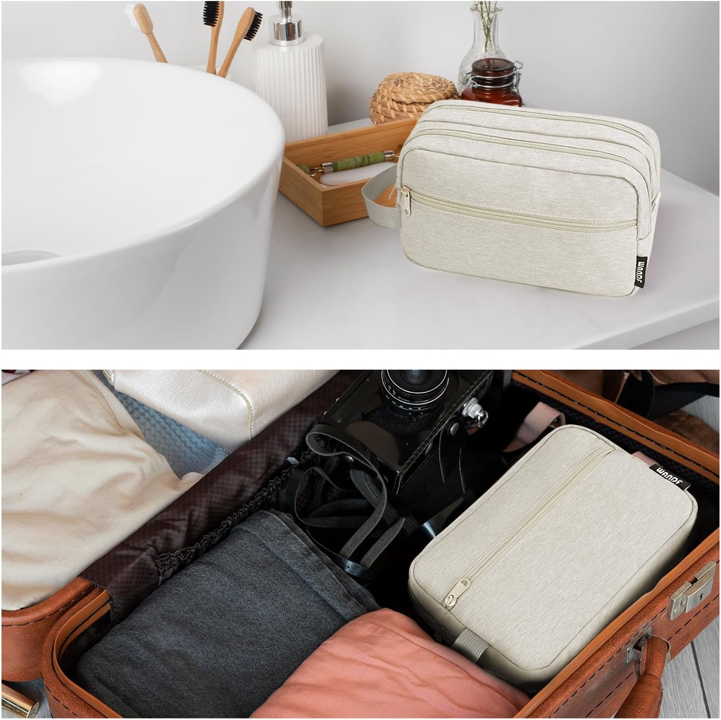 【Well-Designed with Durable Materials】 – The WANDF toiletry bag is made from wear-resistant and water-resistant materials, equipped with neat stitching, smooth zippers, and a design structure that ensures the bag maintains its shape, offering long-lasting durability.