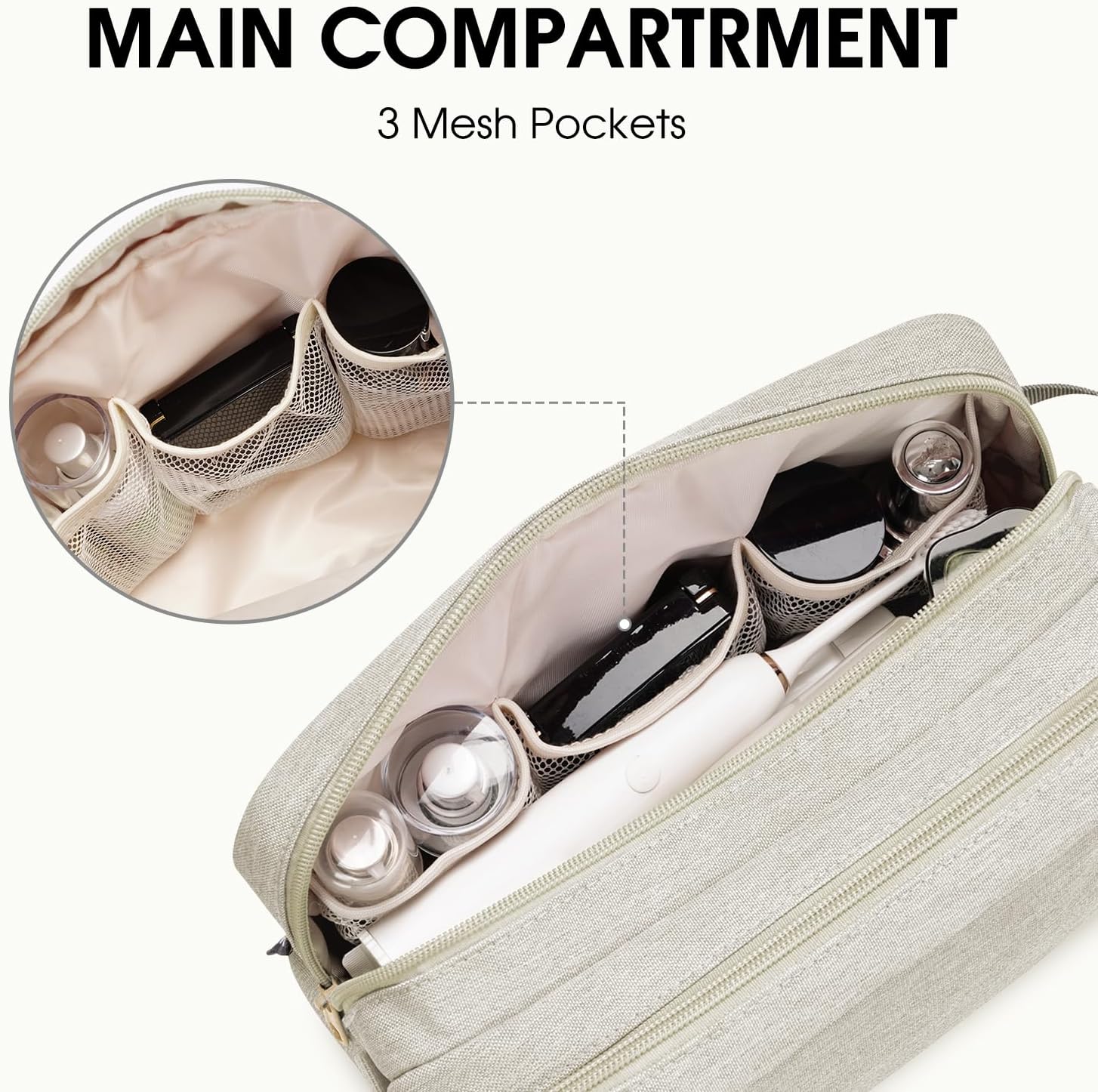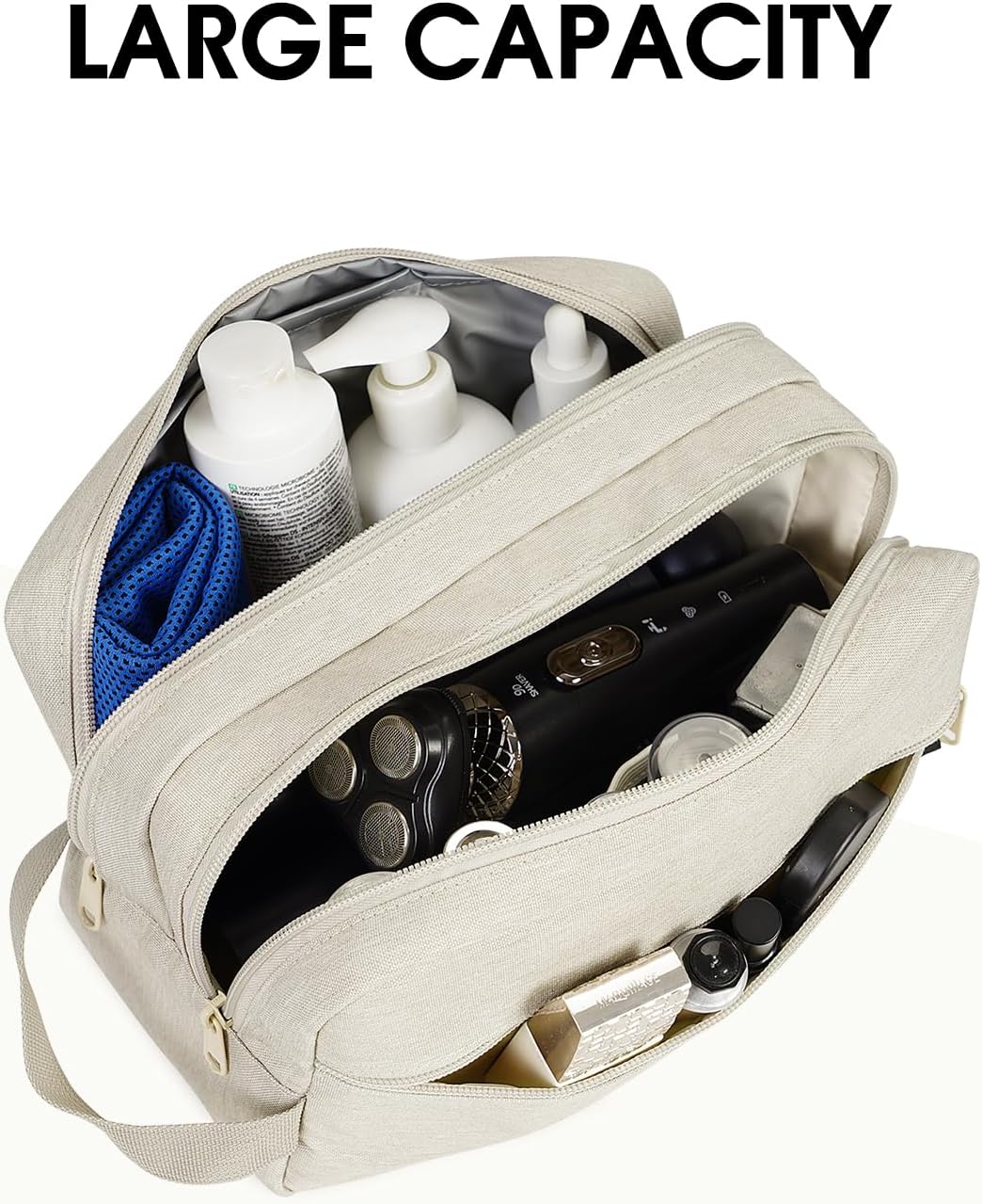 WANDF Travel Toiletry Bag with Wet Compartment Toiletry Organizer Shaving Bag Hanging Dopp Kit for Men Women (Beige)