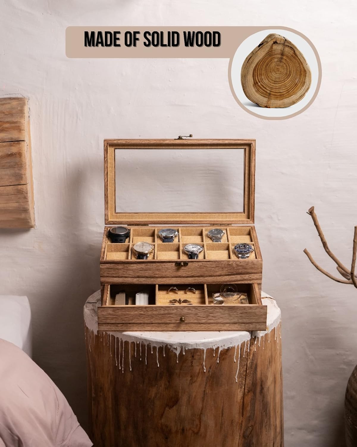 [Solid wood] Watch box organizer is expertly crafted from high-quality, pure solid wood with a unique and natural pattern. Known for their durability and timeless appeal, wood product is a classic match for rustic style and make this watch box a beautiful and long-lasting investment