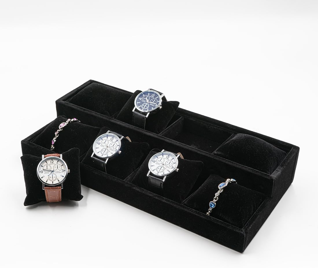 Watch Display case two-stage Pillow Jewelry Trays Bracelet pendant Organizer Storage Box Chests Black