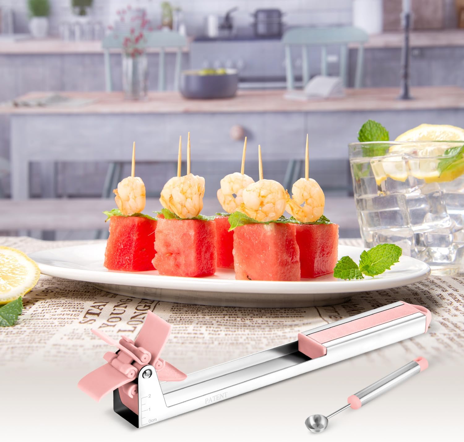 Watermelon Slicer Watermelon Cube Cutter Knife Corer Windmill Stainless Steel Watermelon Fruit Tools with Melon Baller Scooper Easy Slicer Unique Kitchen Gadgets Watermelon Knife Home Gift (Pink)