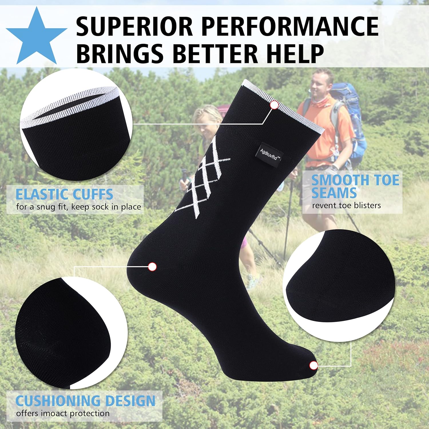 Waterproof Breathable Socks, Unisex Cushioned Outdoor Sports Hiking Wading Trail Runing Skiing Crew Socks
