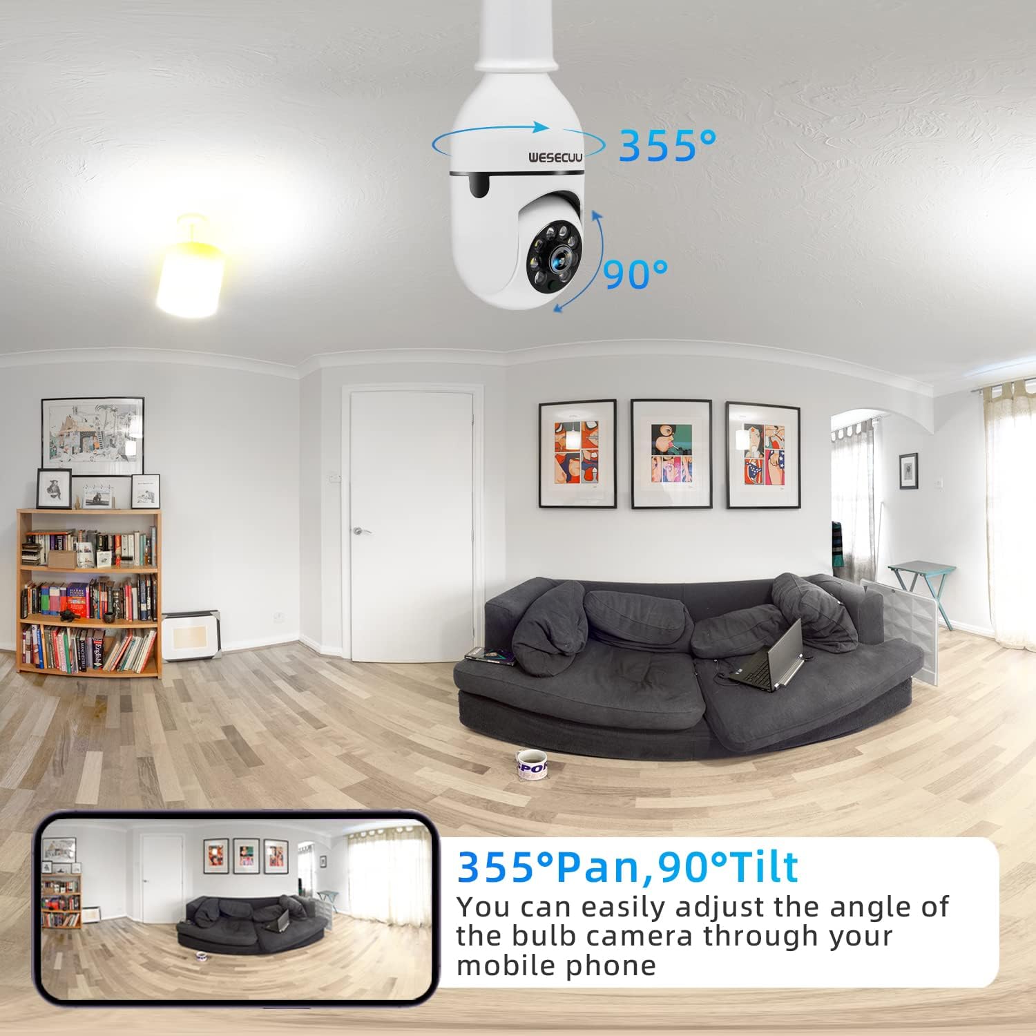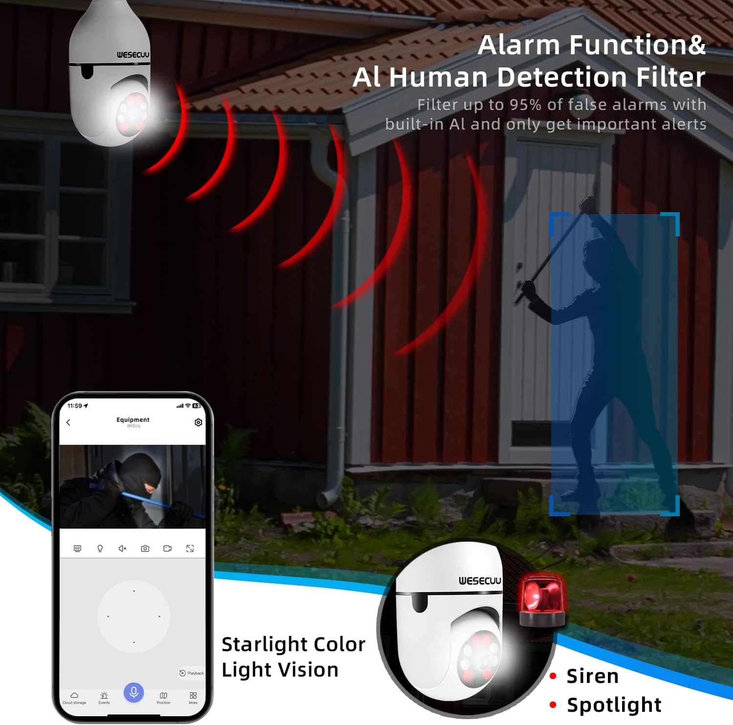 WESECUU Light Bulb Security Camera -5G& 2.4GHz WiFi 2K Security Cameras Wireless Outdoor Motion Detection and Alarm,Two-Way Talk,Color Night Vision,Human Detection, Bulb Camera Compatible with Alexa