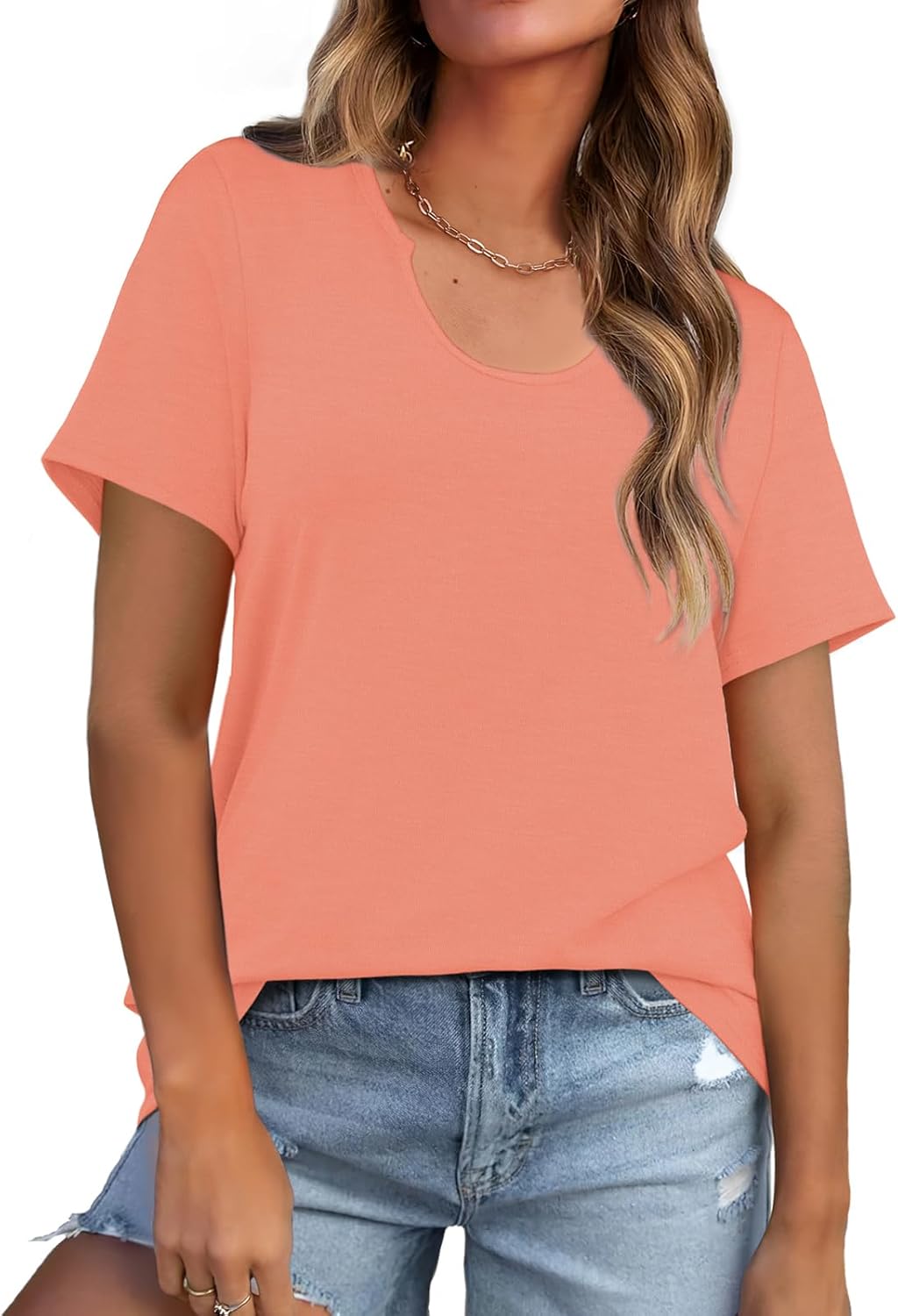 WIHOLL Summer Tops for Women Scoop Neck Basic Tees Short Sleeve Casual T-Shirts Loose Fit