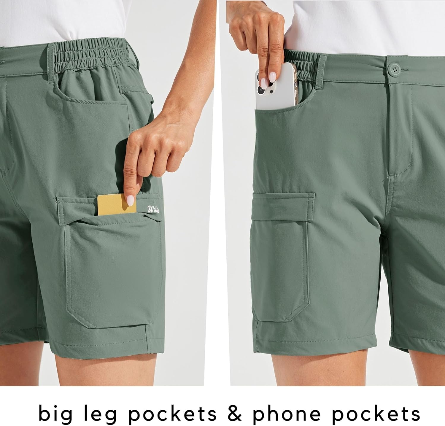 Willit Women’s 7″ Hiking Shorts Active Cargo Shorts Outdoor Quick Dry Summer Shorts with Pockets Water Resistant