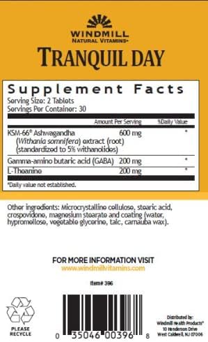 ENHANCE YOUR MOOD. Windmill Natural Vitamins Tranquil Day contains KSM-66, a clinically researched and concentrated form of the plant-based ingredient ashwagandha. This highly bioavailable component offers the highest concentration of full spectrum ashwagandha which can help in addressing stress while enhancing positive mood.