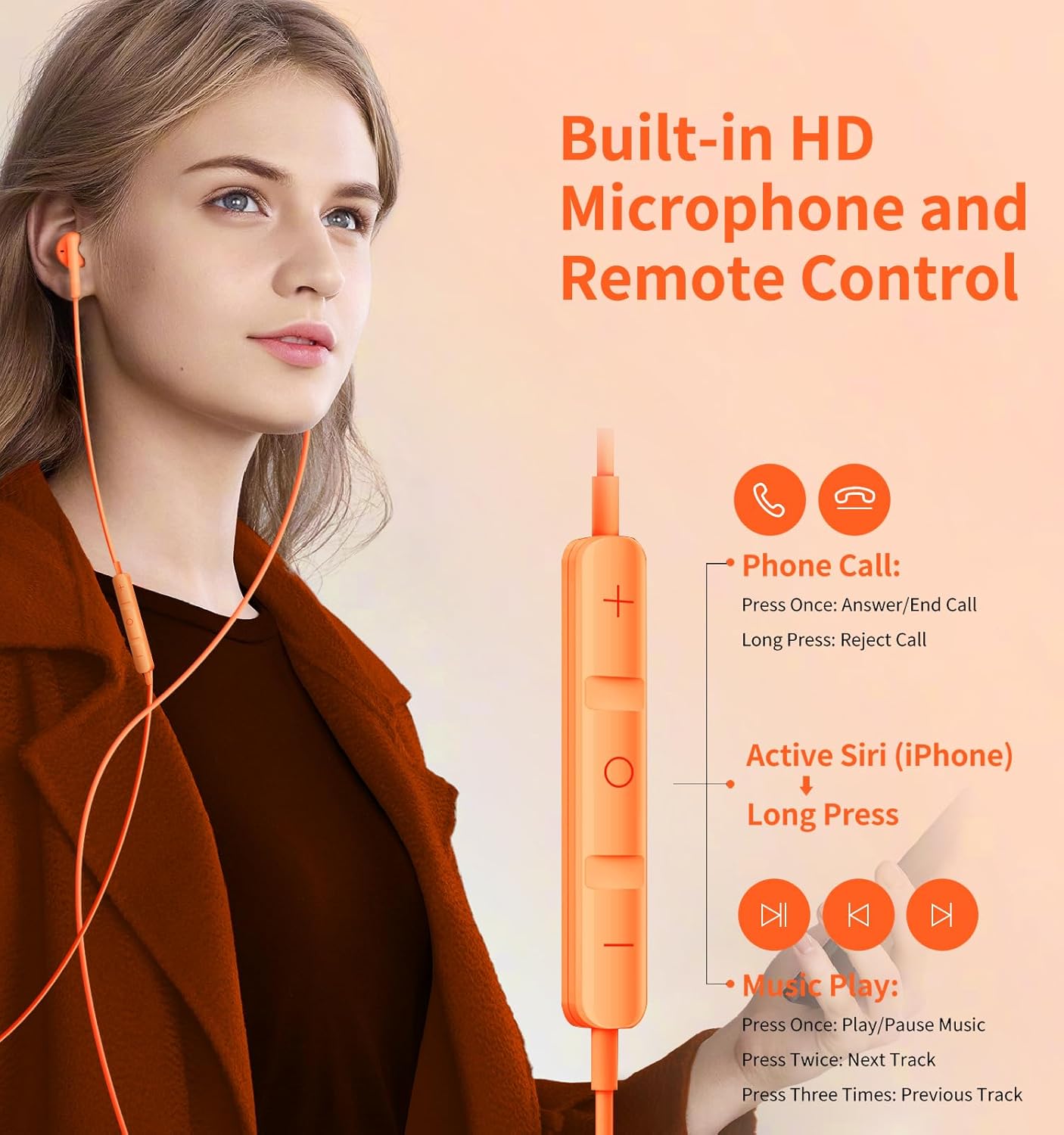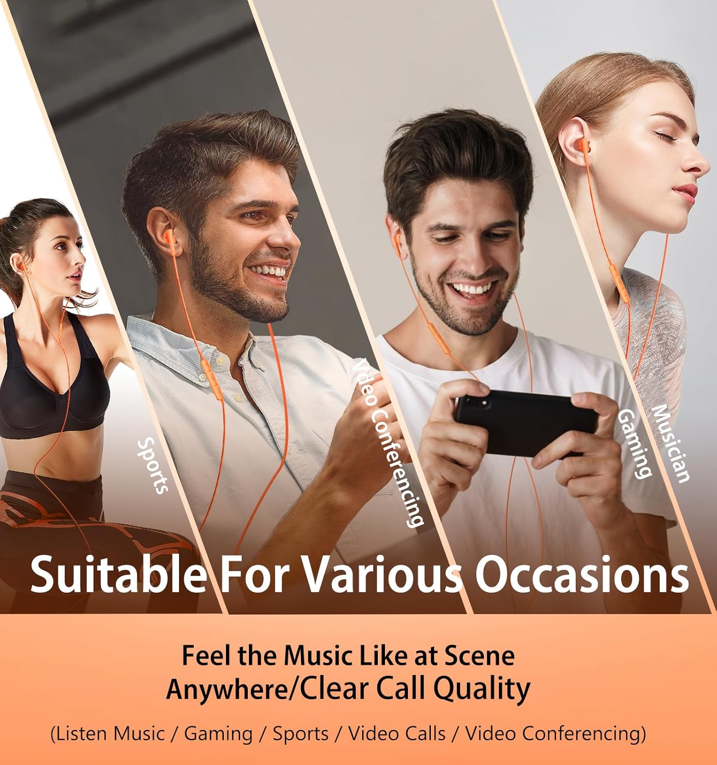 Wired Earbuds with Microphone, Wired Earphones in-Ear Headphones HiFi Stereo, Powerful Bass and Crystal Clear Audio, Compatible with iPhone, Android, Computer Most with 3.5mm Jack(Orange)