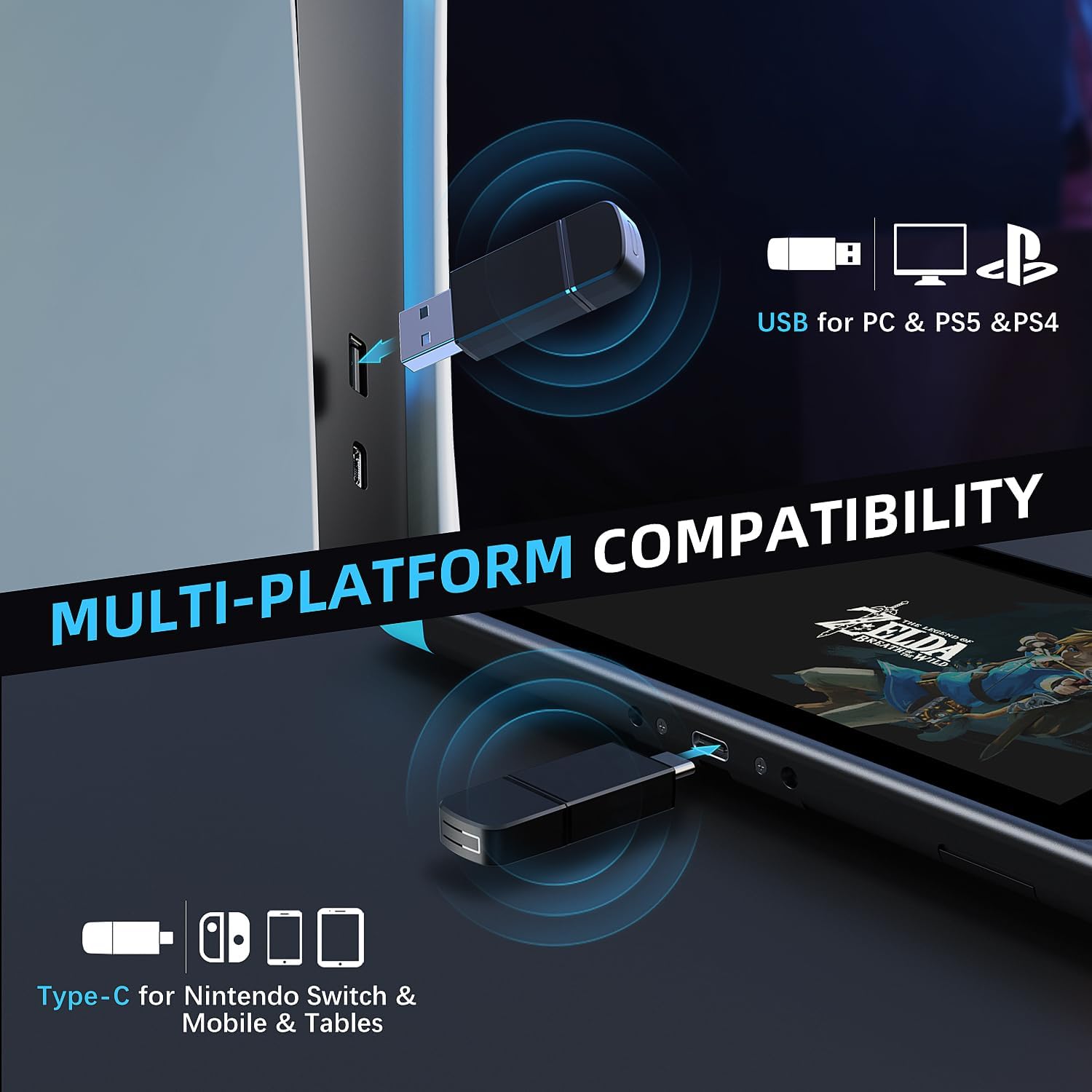 Multi-Platform Compatibility: The 2.4GHz USB dongle is compatible with PC, PS4, PS5, Laptop, Switch, the wireless headset just plugs into the USB&Type-c to play games on various devices. And we are equipped with 3.5mm jack cable, 3.5mm wired mode is compatible with Xbox One, Xbox series. The two modes meet all your needs, so you no longer worry about device compatibility.