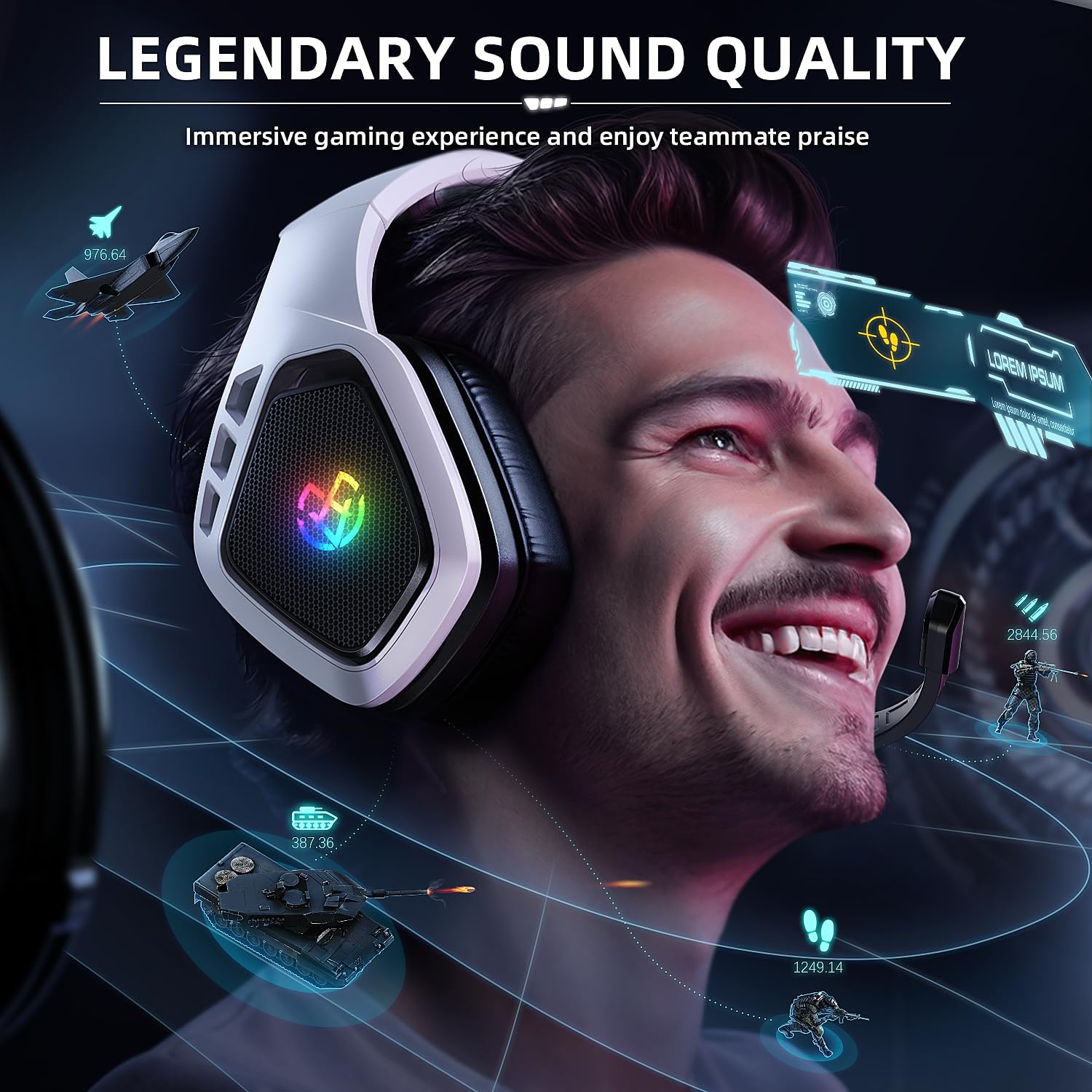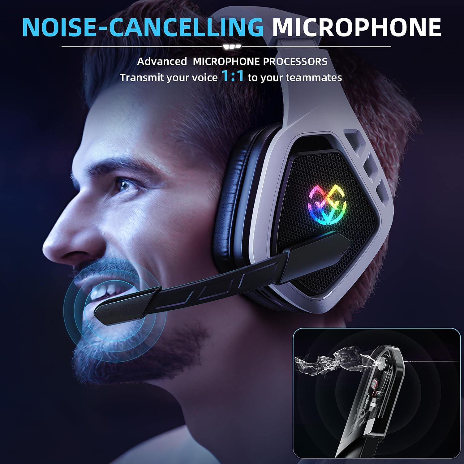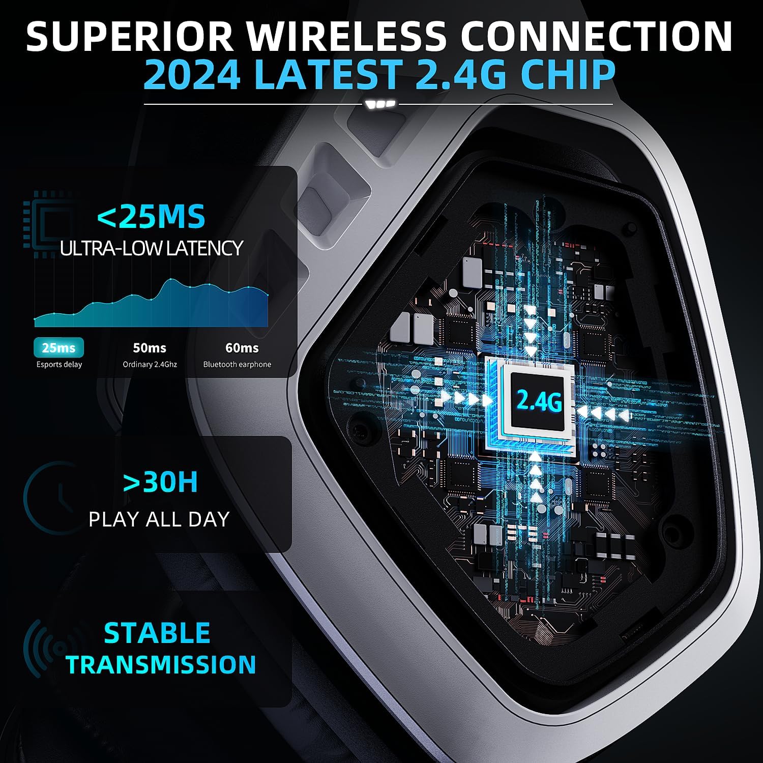 Wireless Gaming Headset for PC, PS5, PS4, 2.4 Ghz USB & Type-C Gaming Headphones with Microphone, 30H Battery Bluetooth Headphones for Switch, Laptop, Mobile, Mac