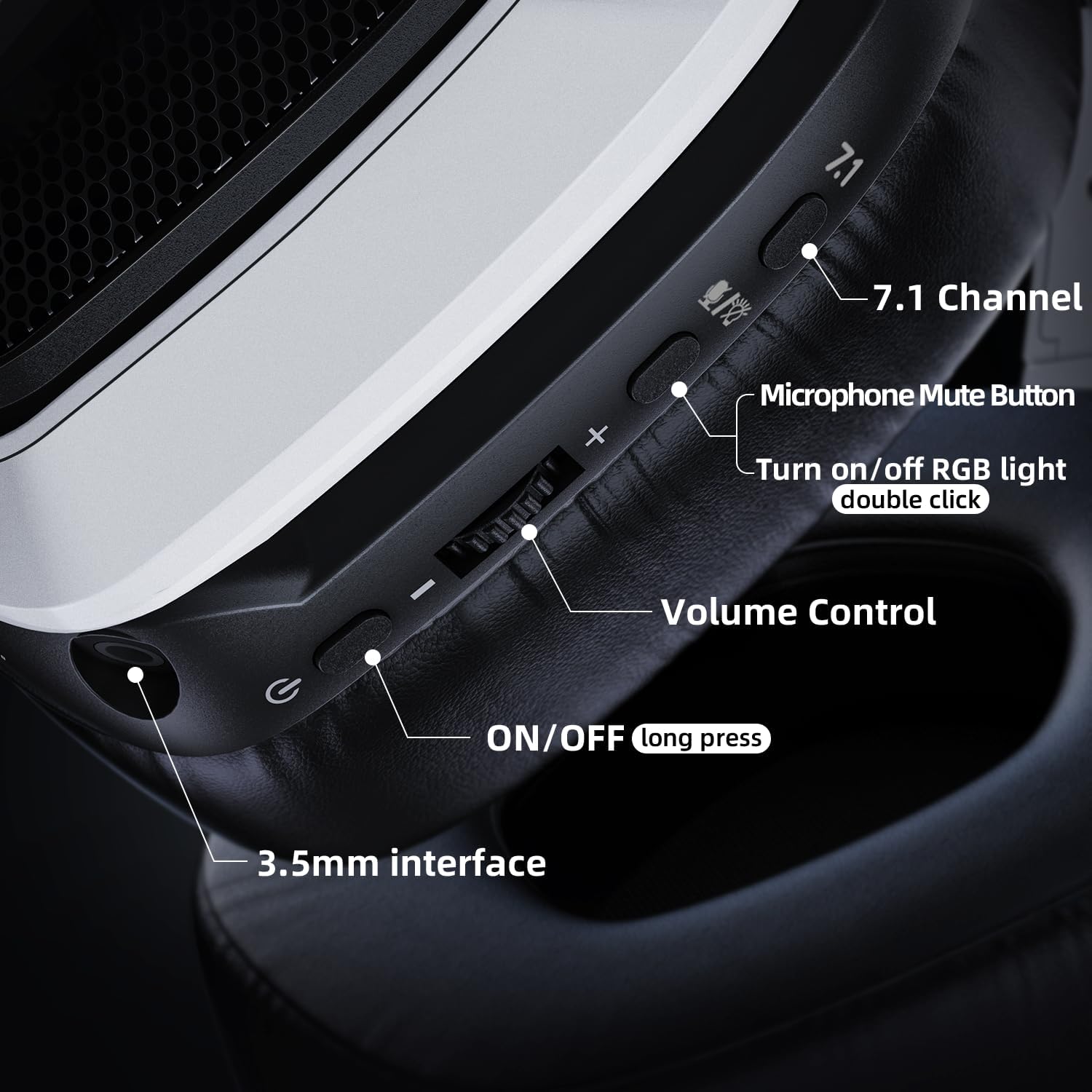 2.4Ghz Low Latency, Smooth Gaming: Tatybo WT5 PS5 wireless gaming headset features industry-leading 2.4GHz connectivity for ultra-low latency gaming and lossless high-quality sound. With our advanced pro gaming headset, experience clear, powerful audio build incredible soundscapes, take immersion to the next level, and gain a competitive edge with 7.1 surround sound.