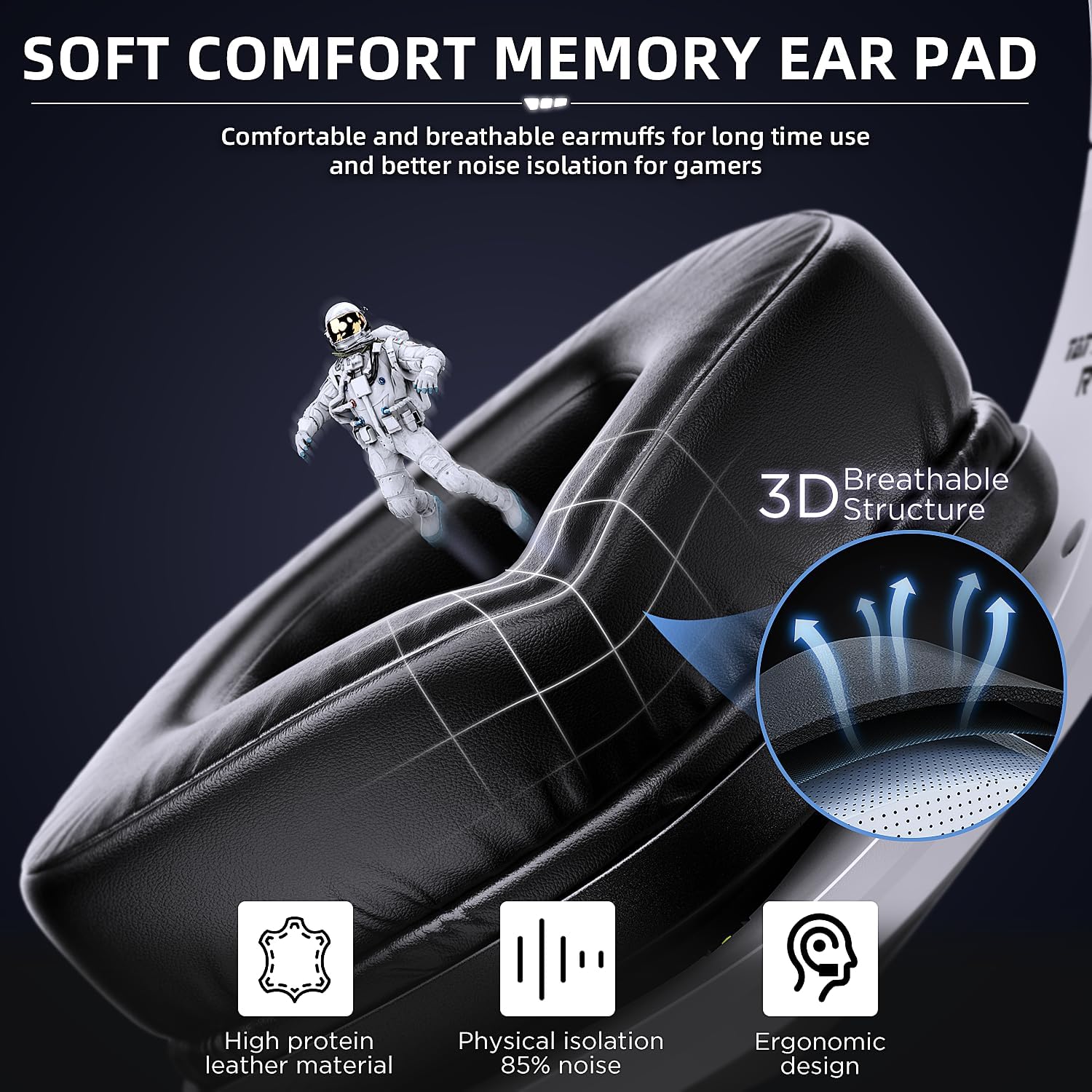 Extra Long Battery Life, All-day Comfort: Up to 30 hours of battery life. The ear cups and headband are made of high quality protein leather, with soft loop ear cushions and soft head wrap design, as well as an adjustable headband suitable for a variety of head shapes, ensuring comfortable use during long gaming sessions. All of these ergonomic designs provide a comfortable wearing experience while gaming or listening to music.