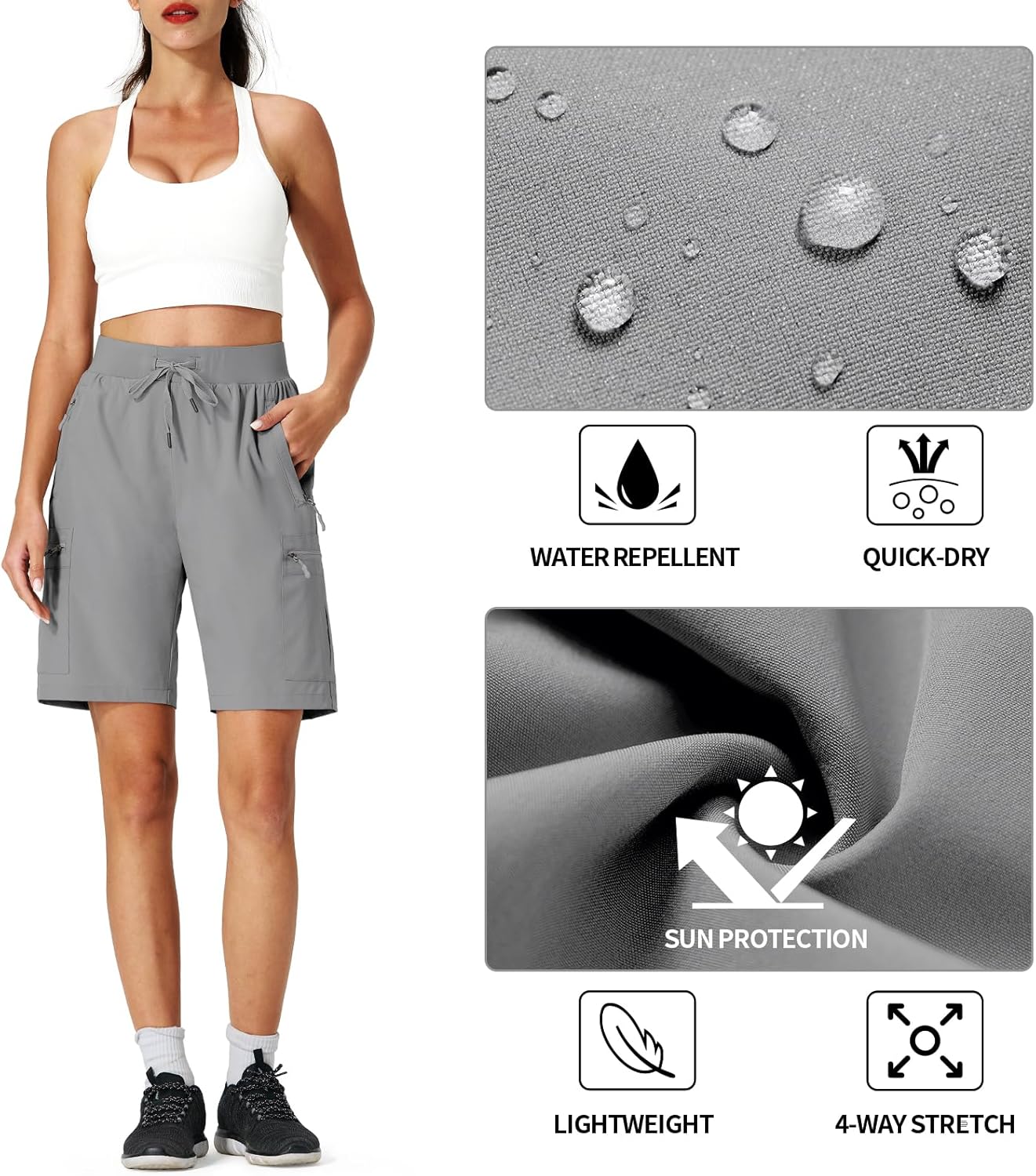 Women’s Hiking Cargo Shorts Quick Dry Lightweight Summer Shorts with Zipper Pockets for Travel Golf Camping