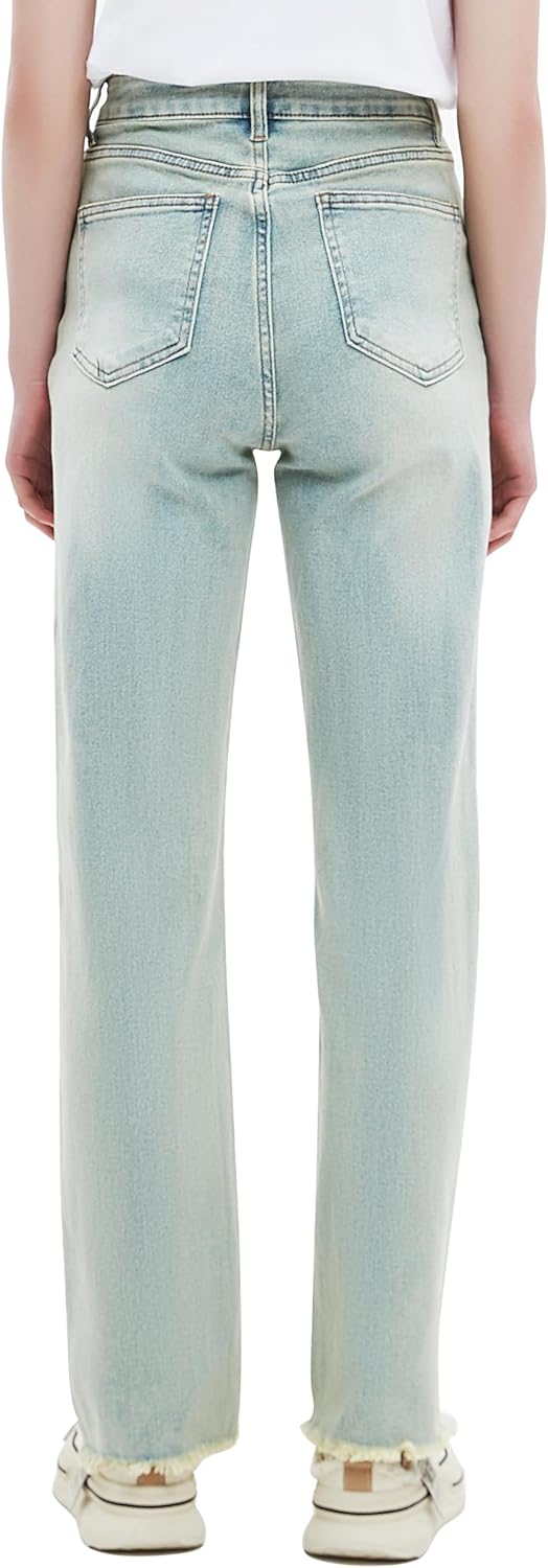 Women’s Jeans High Waisted Straight Stretchy Trendy Ripped Frayed Hem Jeans for Women