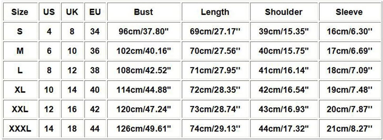 Size:XXL US:12 UK:16 EU:42 Bust:120cm/47.24” Length:73cm/28.74” Shoulder:43cm/16.93” Sleeve:20cm/7.87”