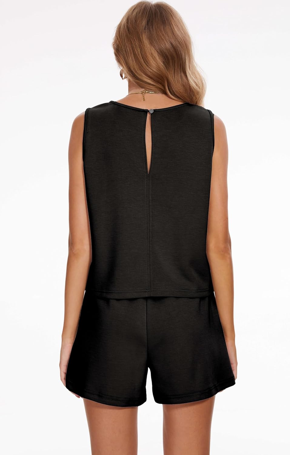 Women’s Summer 2 Piece Outfits Short Sleeve Crew Neck Top Cropped High Waist Shorts Sets with Pockets
