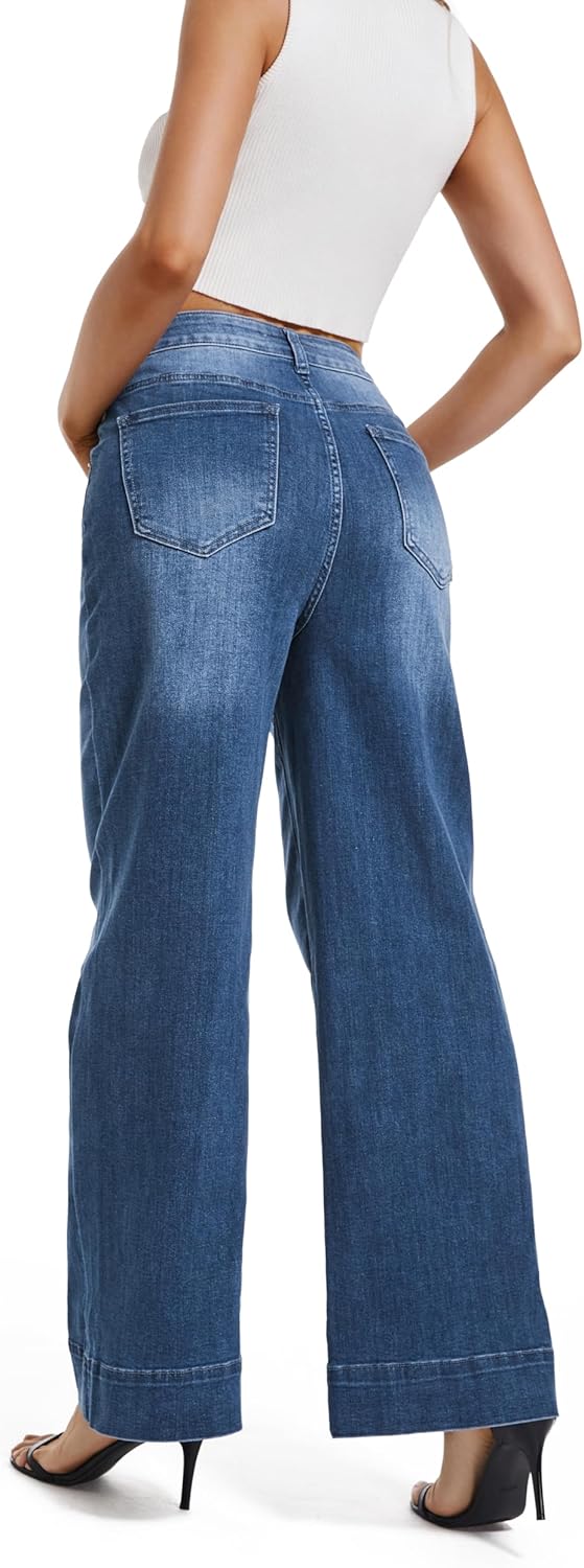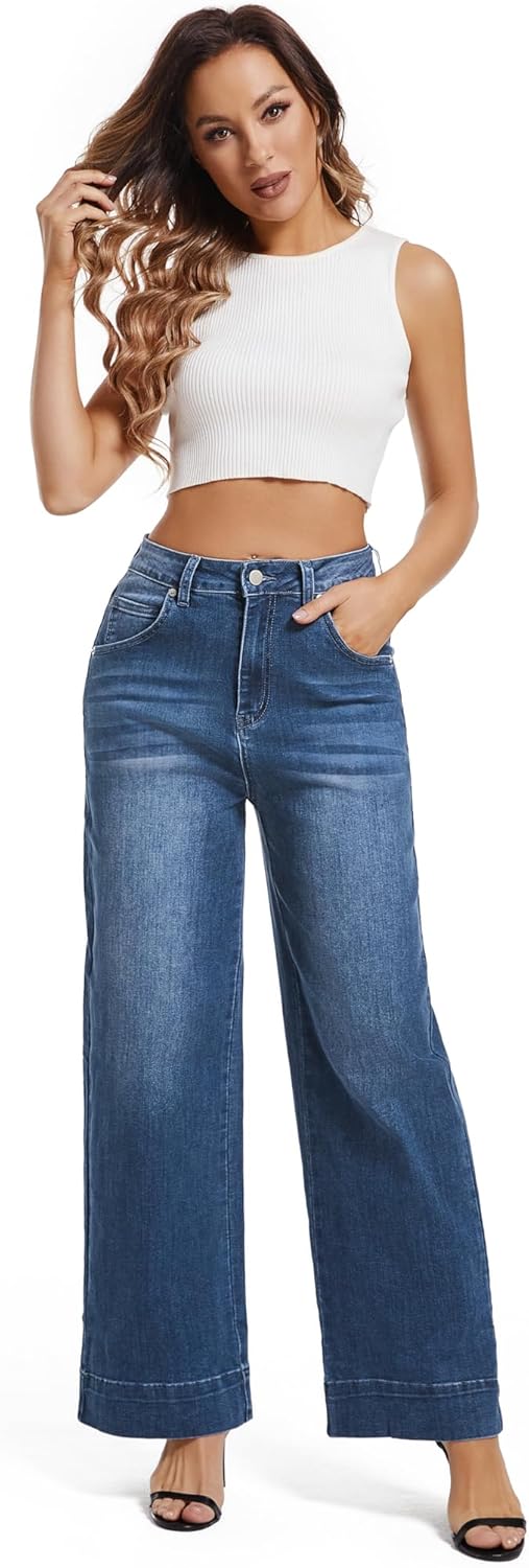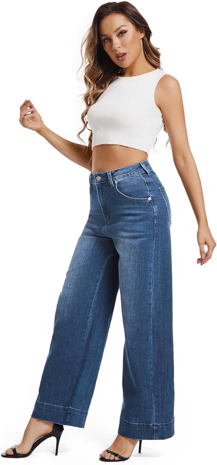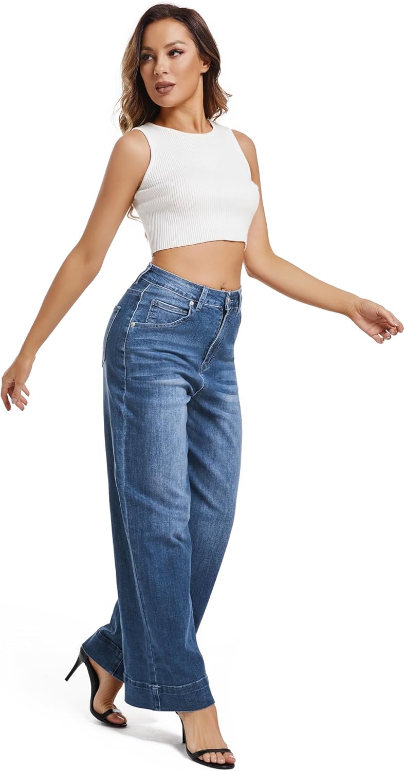 Womens Wide Leg Jeans High Waisted Stretchy Baggy Jeans for Woman Trouser Jeans for Women Trendy Loose Jeans