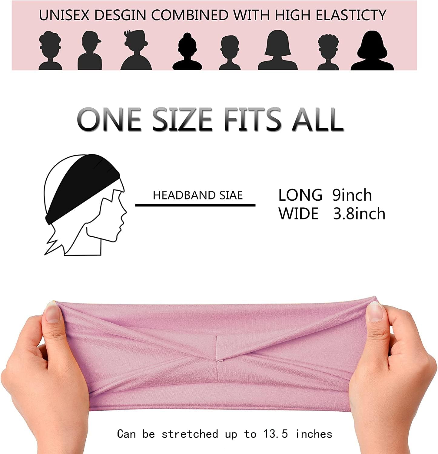 【ONE SIZE FITS MOST】: 3.8 inches wide and 9 inches long with an elastic band closure, this fitness headband for women provides a performance stretch up to 13.6 inches to suit different head sizes while ensuring maximum comfort. Hard to slip off even during intense exercises.