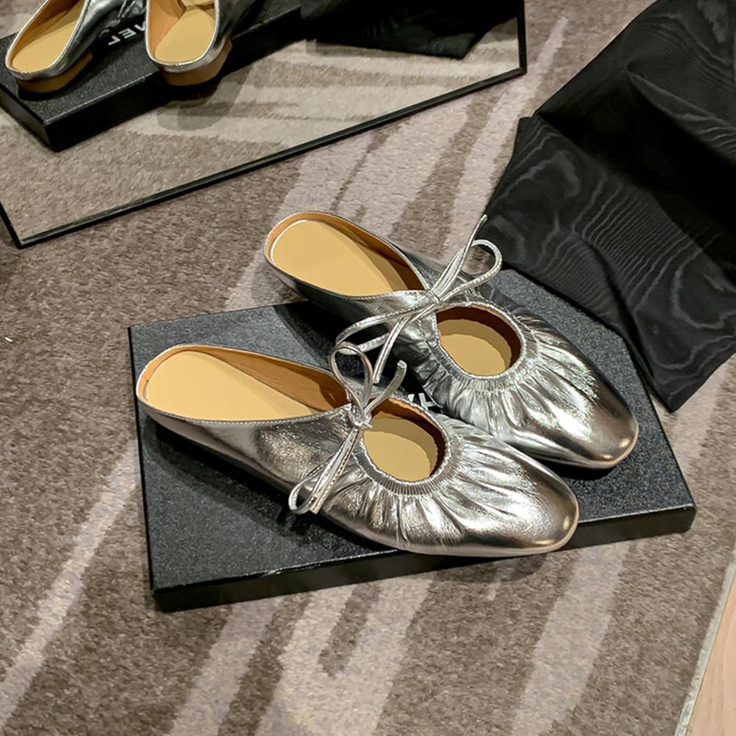 Women’s Fashion Wrinkled Leather Lace Up Flat Mules