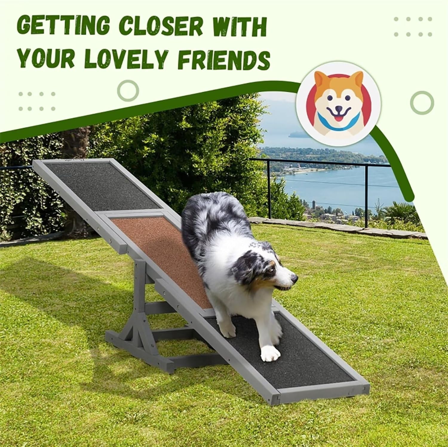 Wooden Dog Agility Seesaw for Training and Exercise, Platform Equipment Run Game Toy, Weather Resistant Pet Supplies Gray 71″ L x 12″ W x 12″ H