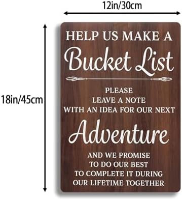 Wooden Signs/Bucket List Wedding Sign, Adventure Decor for Reception, Guest Interaction and Table Decorations Kitchen Cafe Pub Decor, Wood wal Art, Rustic Wood Decor Gift 12×18 INCH
