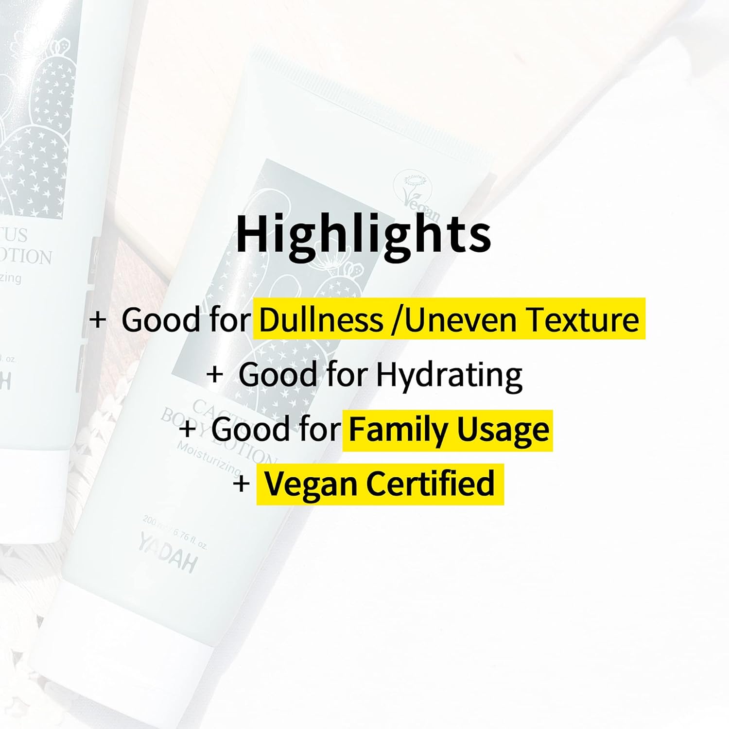 YADAH Cactus Body Lotion 6.76fl.oz. – 69.58% of Cactus instead of Water, Vegan Paraben Free Non Sticky Moisturizing Emulsion for Dry Sensitive Skin