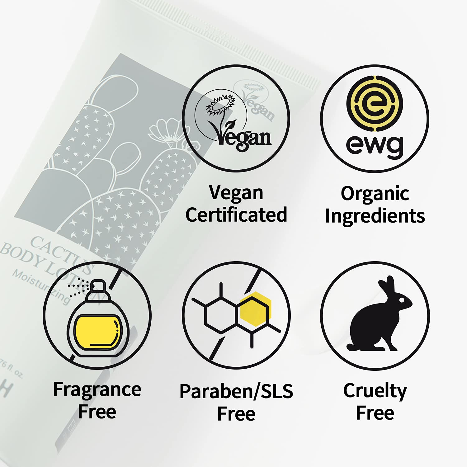 CACTUS EXTRACT: EWG Green graded ingredients with over 69% of prickly pear extract in our Cactus Body Lotion. Cactus holds 5 times more vitamin C and vitamin A than that of Aloe Vera. It also contains ‘Tocopherol’ which provides moisture to exhausted skin and also acts as daily protection to your skin.