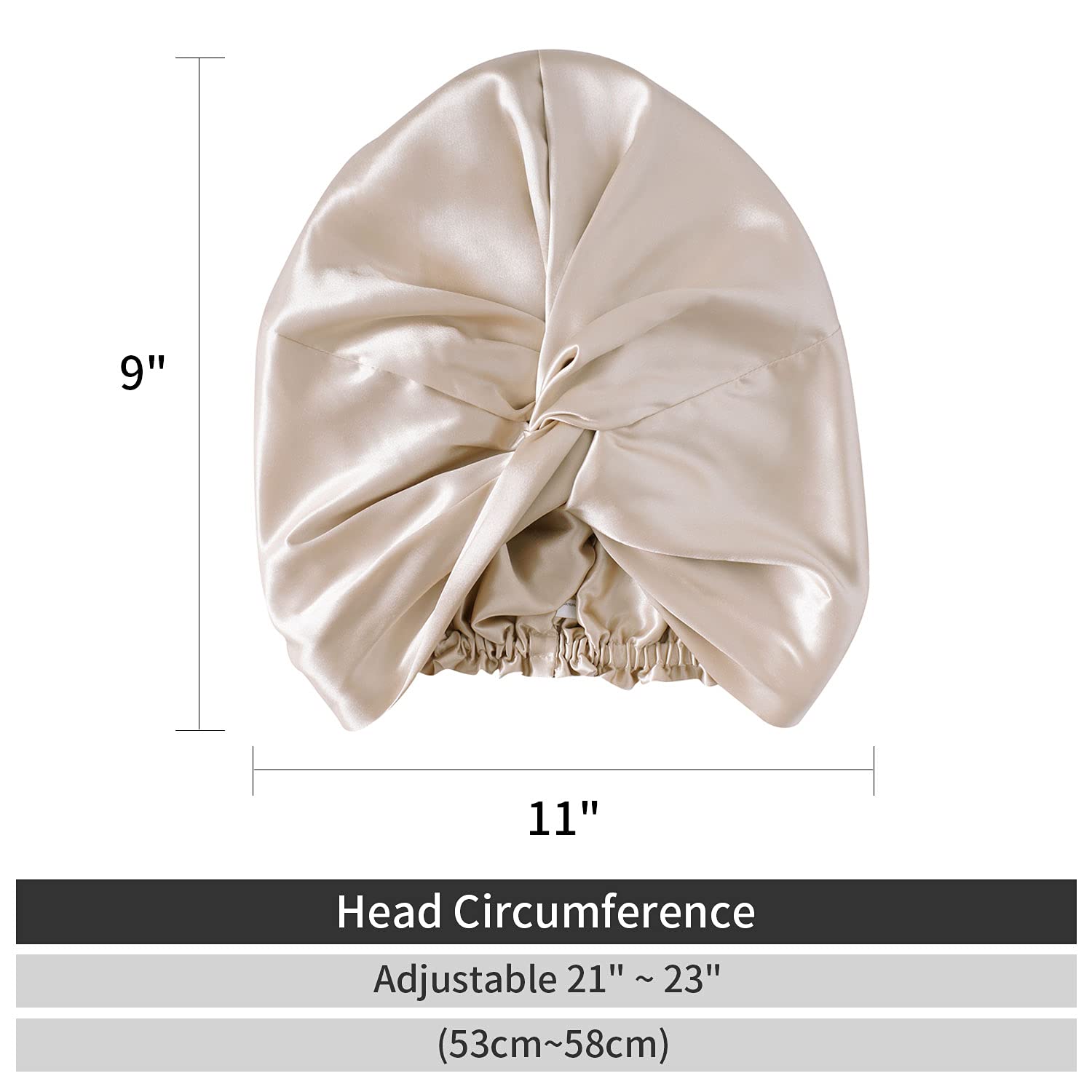 ✅THE BENEFITS of SILK BONNET: The perfect night-time companion, this pure silk hair turban is designed to protect hair from breakage and frizz and lock in your natural hair oils. 100% Mulberry silk hair wrap have a soft, smooth texture that allows hair to slide across its surface, damage free. In the same way, silk helps your skin retain moisture, it can keep your hair softer too. Wearing your hair overnight in a silk hair bonnet is a naturally nourishing conditioning treatment.